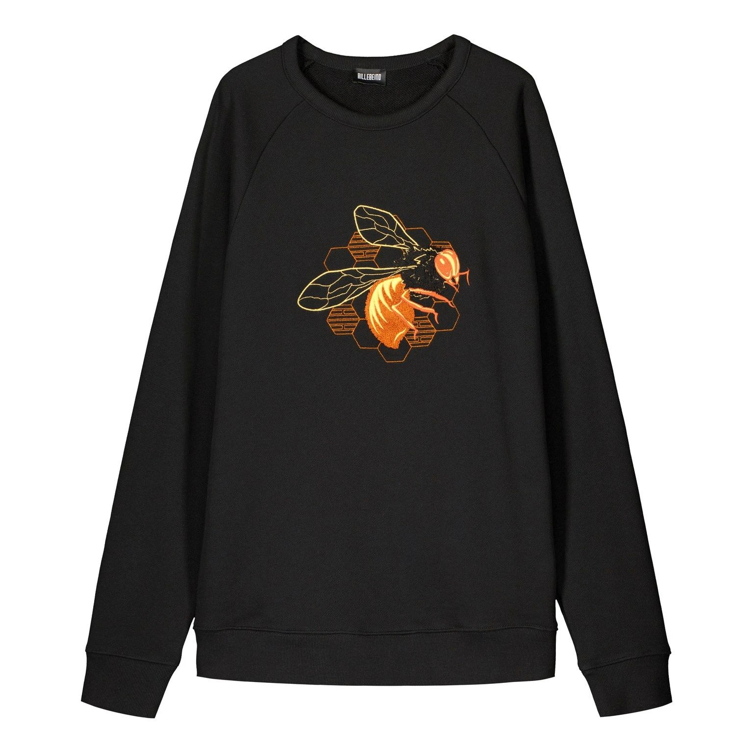 SS23 collegepaita, jossa Bee brodeeraus edessä. Pehmeä, harjattu sisäpuoli tekee tästä puserosta erittäin mukavan käyttää.