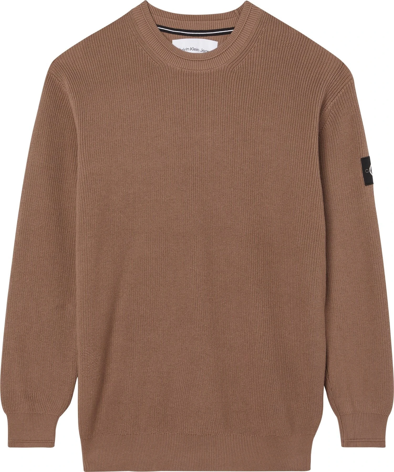 Calvin Klein Jeans miesten rento puuvillainen neulepaita, jossa on pyöreä pääntie ja pitkät hihat. Pääntiellä, hihansuissa ja helmassa on joustinneulosta, ja toisessa hihassa logomerkki. Neulepaidassa on hieman pudotetut olkasaumat sekä väljästi laskeutuva malli.
