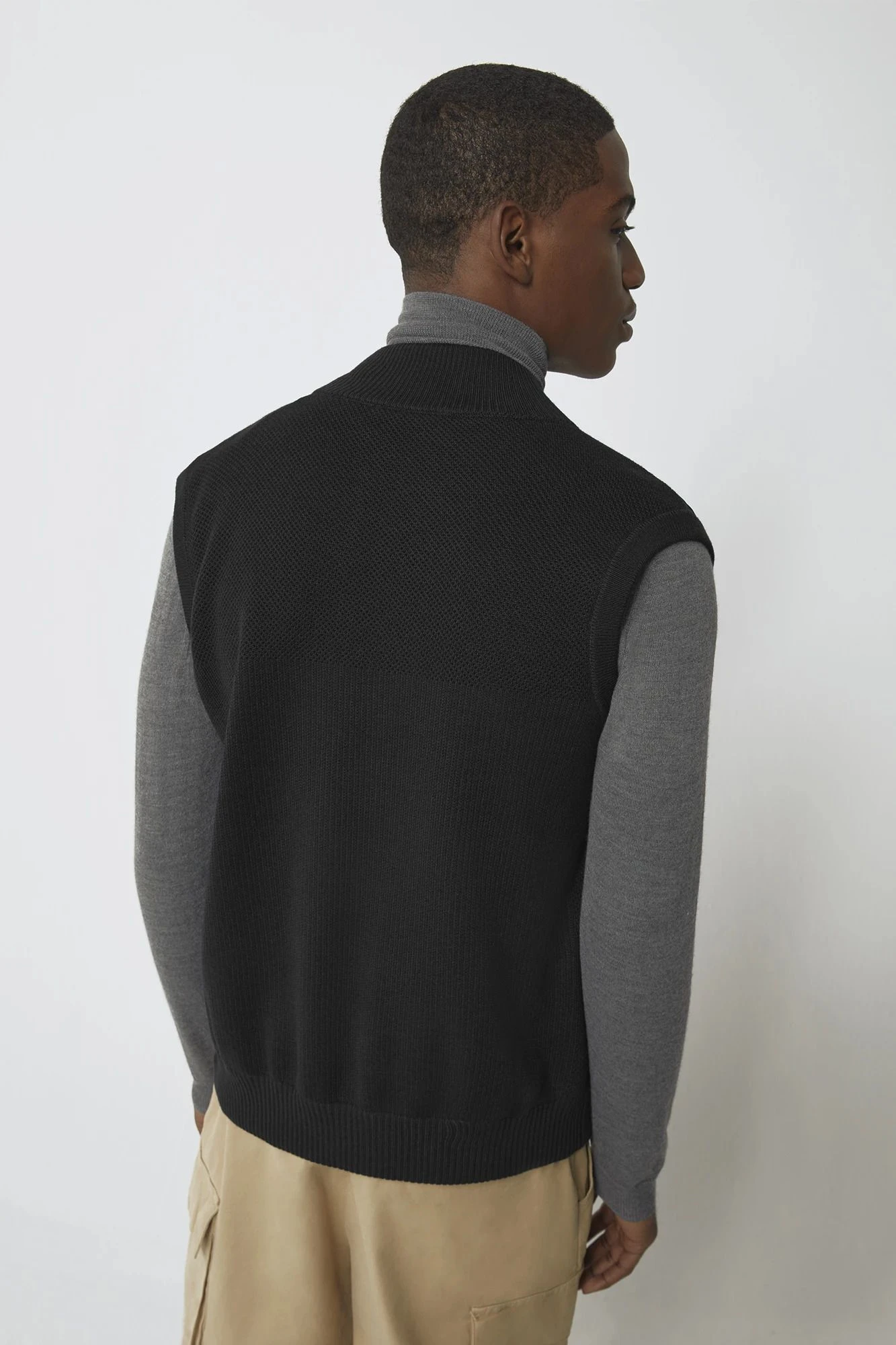 Liivi on kevyttä kudosta ja takaosa merinovillaa, joka imee kosteutta tuntuen kuitenkin kuivalta ja lämpimältä. Kaksi etutaskua, resorit kauluksessa, hihansuissa ja helmassa. Rinnuksessa Canada Goose logo.
