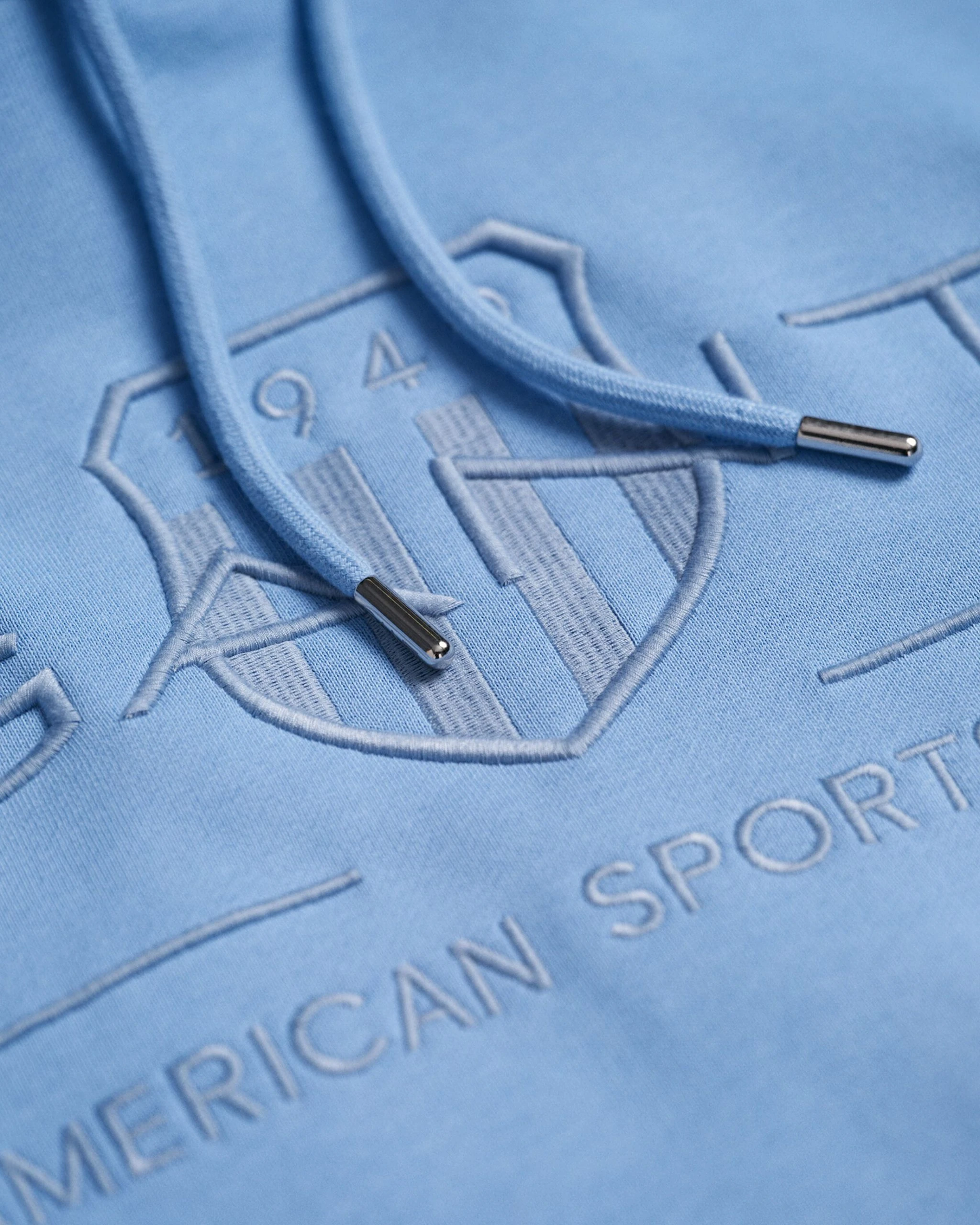 Gant miesten huppari. Edessä hupussa säätönyörit. Hupparin helmassa ja hihansuissa resorit. GANT 80-luvun mallistojen innoittama Archive Shield ‑logo edessä.