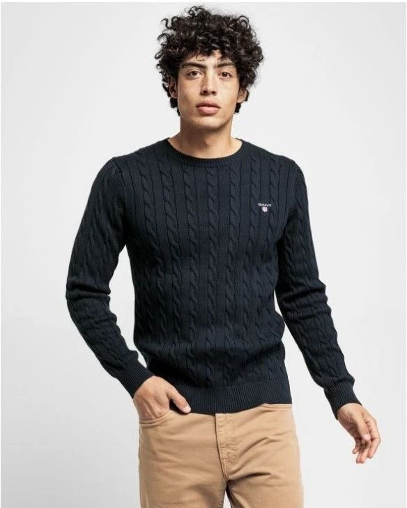 Ganti klassinen puuvillaneule. O-pääntie, rinnassa pieni logo.
