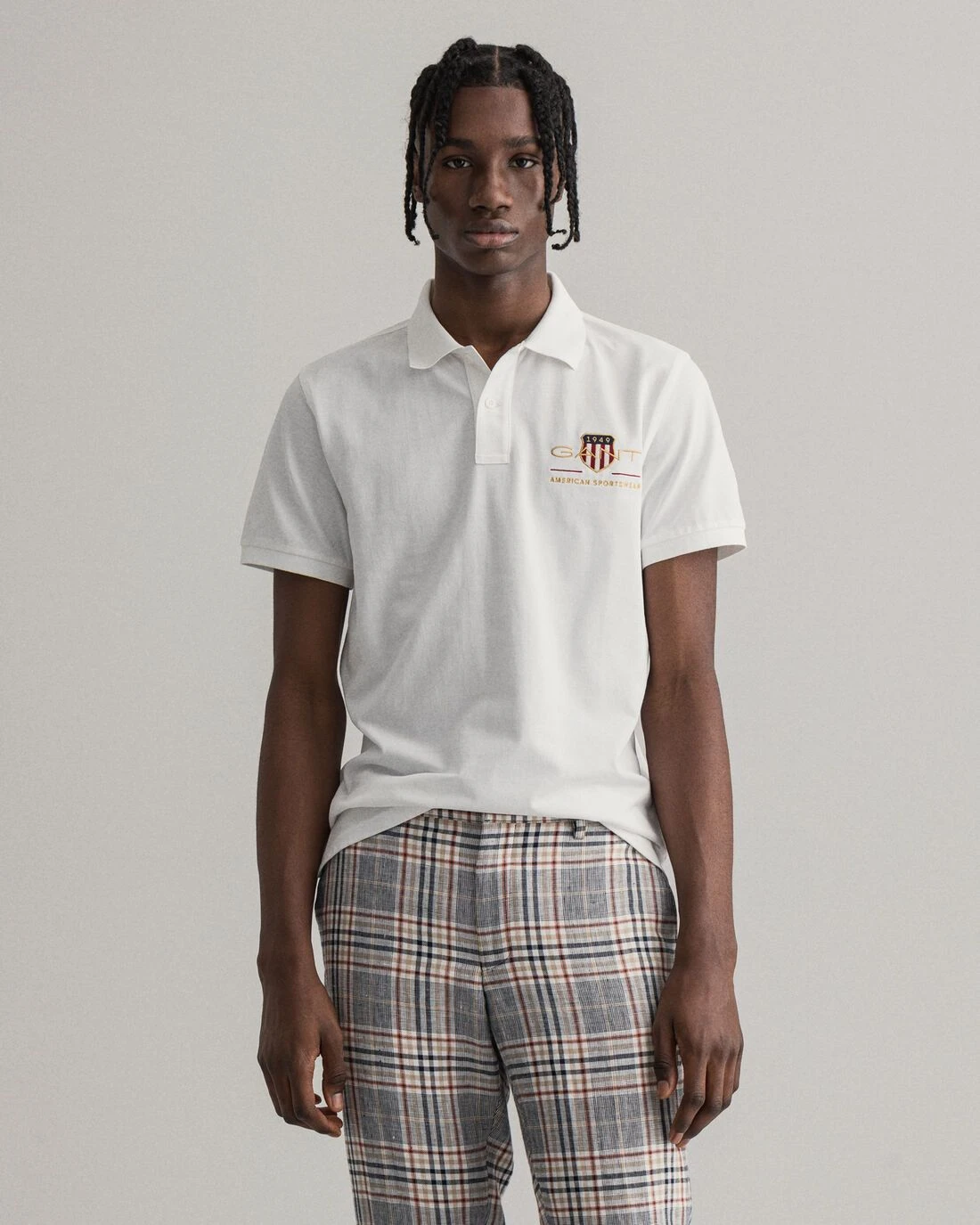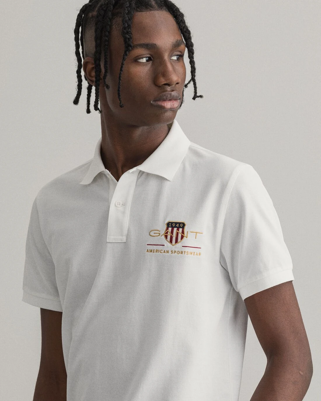 Miesten klassinen lyhythihainen pikeepaita. Rinnassa kirjailtu Archive Shield -vaakunakuvio.