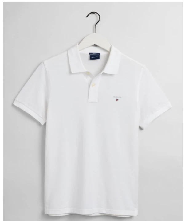 Gant miesten lyhythihainen pikeepaita. Resorikaulukset, edessä lyhyt nappilista ja helmassa lyhyet halkiot sivuilla.