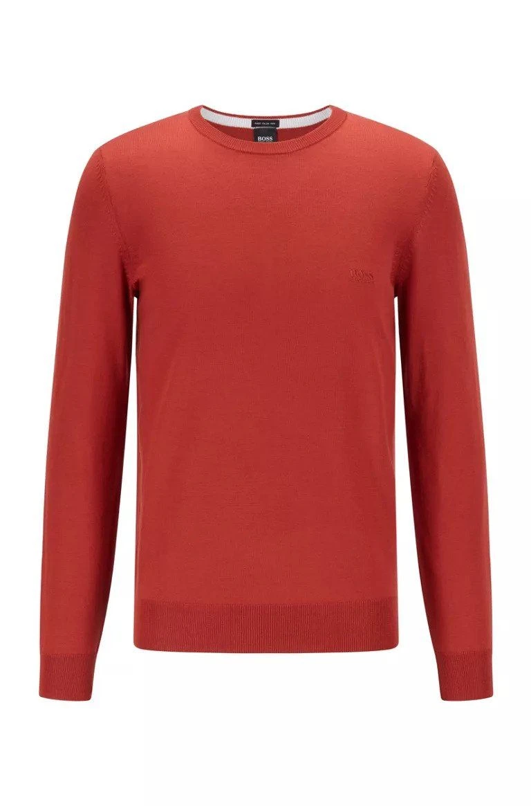 Hugo Bossin miesten klassinen neulepaita 100% villaa. Normaali istuvuus, pyöreä pääntie ja pitkät hihat. Pääntiellä, hihansuissa ja helmassa joustinneulosta. Rinnassa hillitty brändin logo.