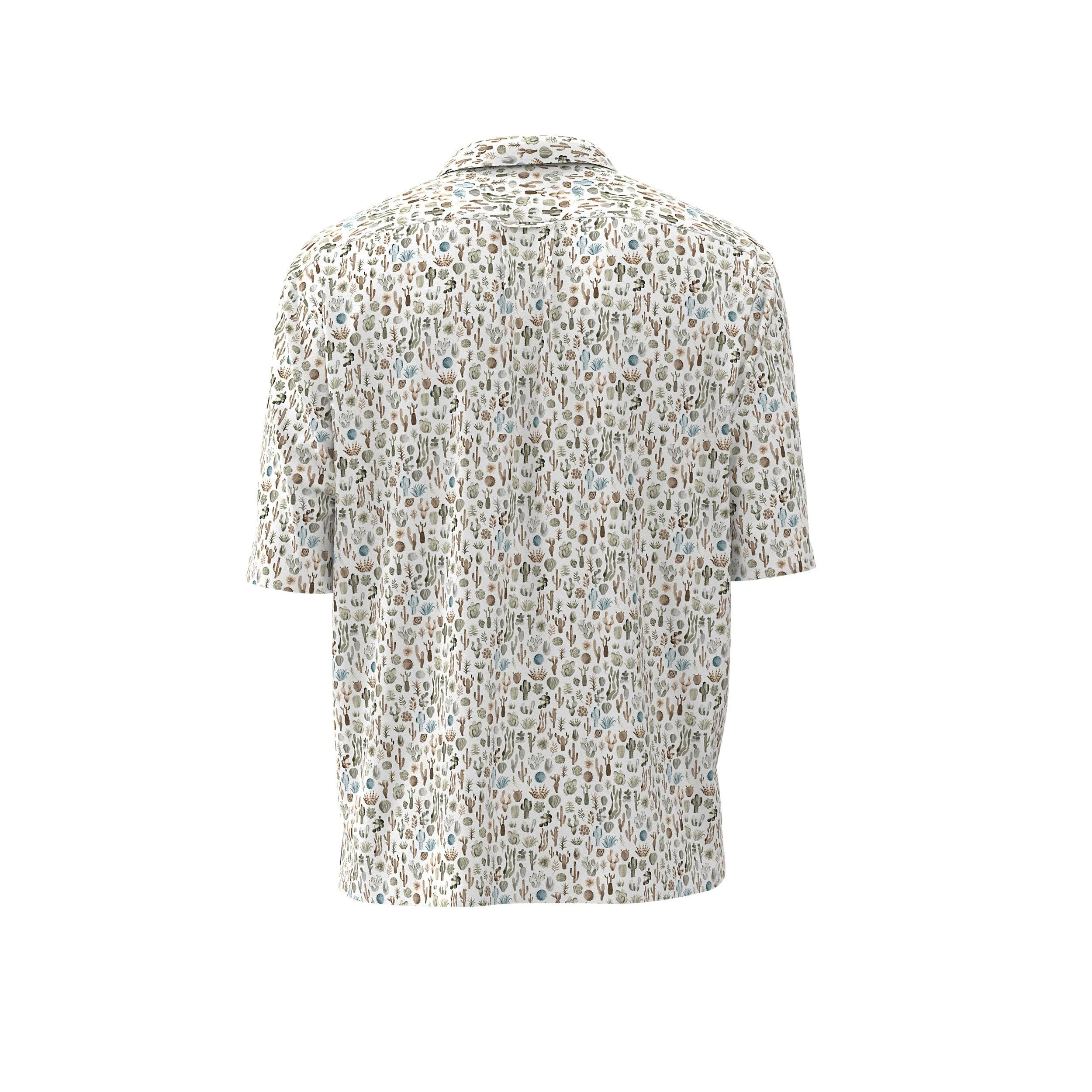 Miesten kuviollinen, lyhythihainen kauluspaita, normaali mitoitus. Helmassa halkiot. Rento kesäpaita shortsien ja chinoshousujen kanssa.