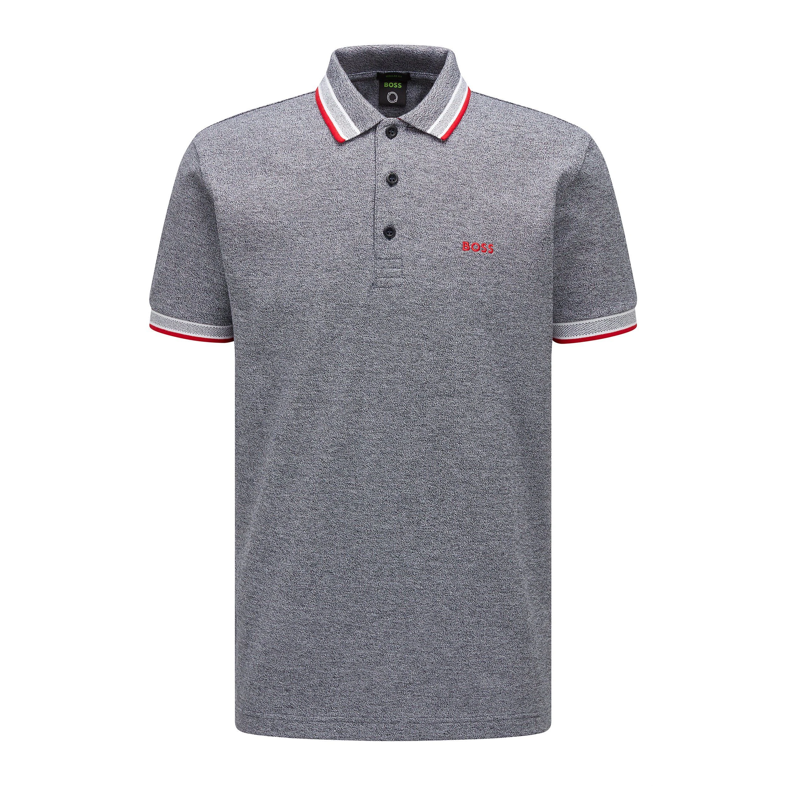 Miesten kauluksellinen pikeepaita, kontrastit kauluksen reunassa ja hihansuissa. Edessä klassinen nappihalkio. Normaali istuvuus.