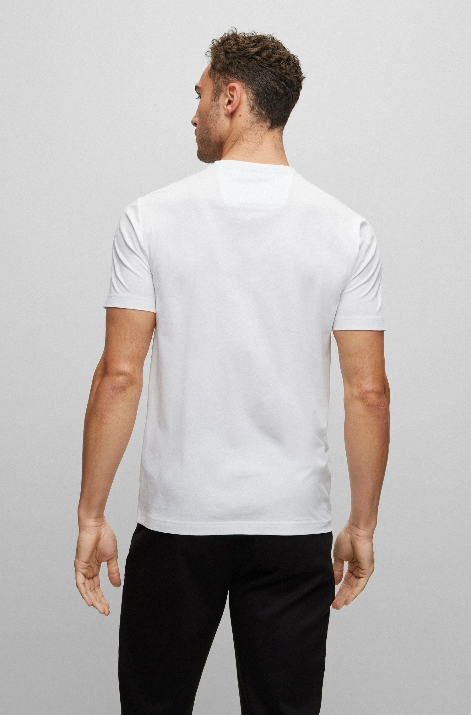 BOSS Menswearin T-paita single-jerseyssä, jossa on foliopainattu logo. VASTUULLISTA tuotteistamme käytämme aina vähintään 60 % kestävämpiä raaka-aineita. Ostamalla tämän tuotteen autat ympäristönsuojelua ja kestävää puuvillanviljelyä Afrikassa. CmiA-merkityt tuotteet auttavat parantamaan afrikkalaisten puuvillanviljelijöiden elin- ja työoloja sekä suojelemaan luontoa.