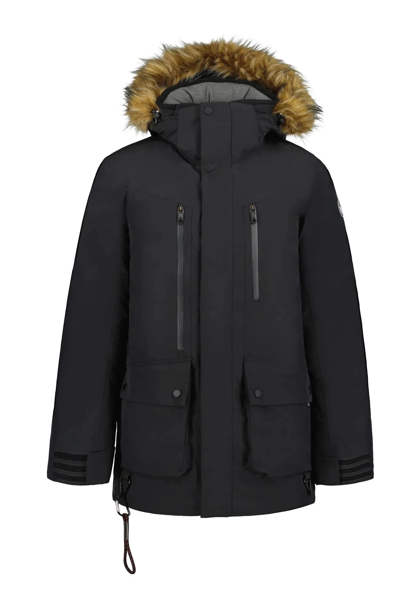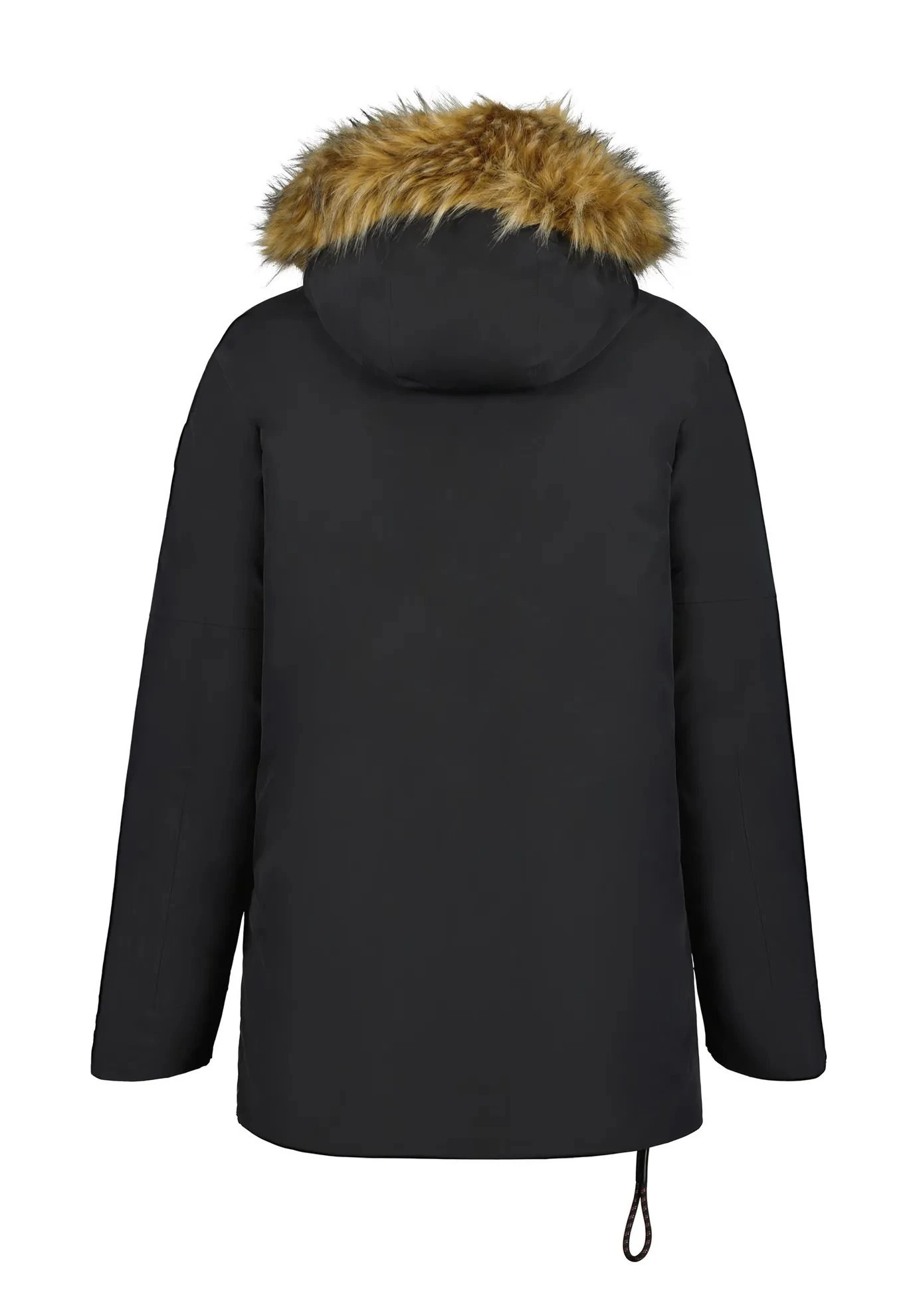 Erittäin lämmin takki, jonka täyte on kevyttä untuvajäljitelmää. Korkea kaulus, jossa pehmeä vuori. Edessä napillinen tuulilista ja läpälliset, vuorelliset taskut nappikiinnityksellä sekä vetoketjulliset rintataskut. Irroitettava, säädettävä huppu, jossa irroitettava karvareunus. Kiristettävä helma. Takin pintamateriaali on tuulen- ja vedenpitävää. Halkiot helmassa.