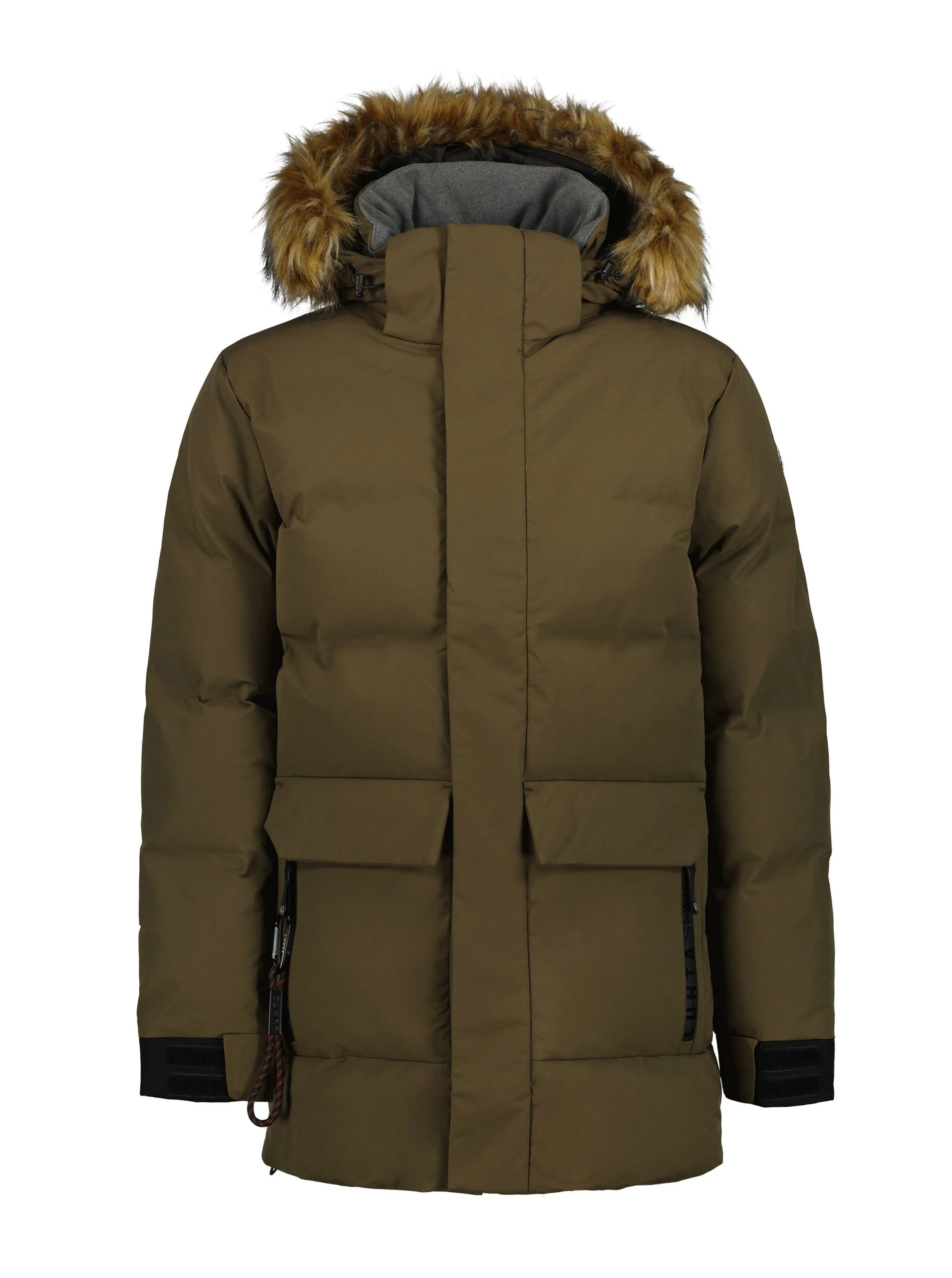 Erittäin lämmin takki, jonka täyte on kevyttä untuvajäljitelmää. Edessä napillinen tuulilista ja läpälliset taskut. Kiinteä, säädettävä huppu, jossa irroitettava karvareunus. Kiristettävä helma. Takin pintamateriaali on tuulen- ja vedenpitävää.