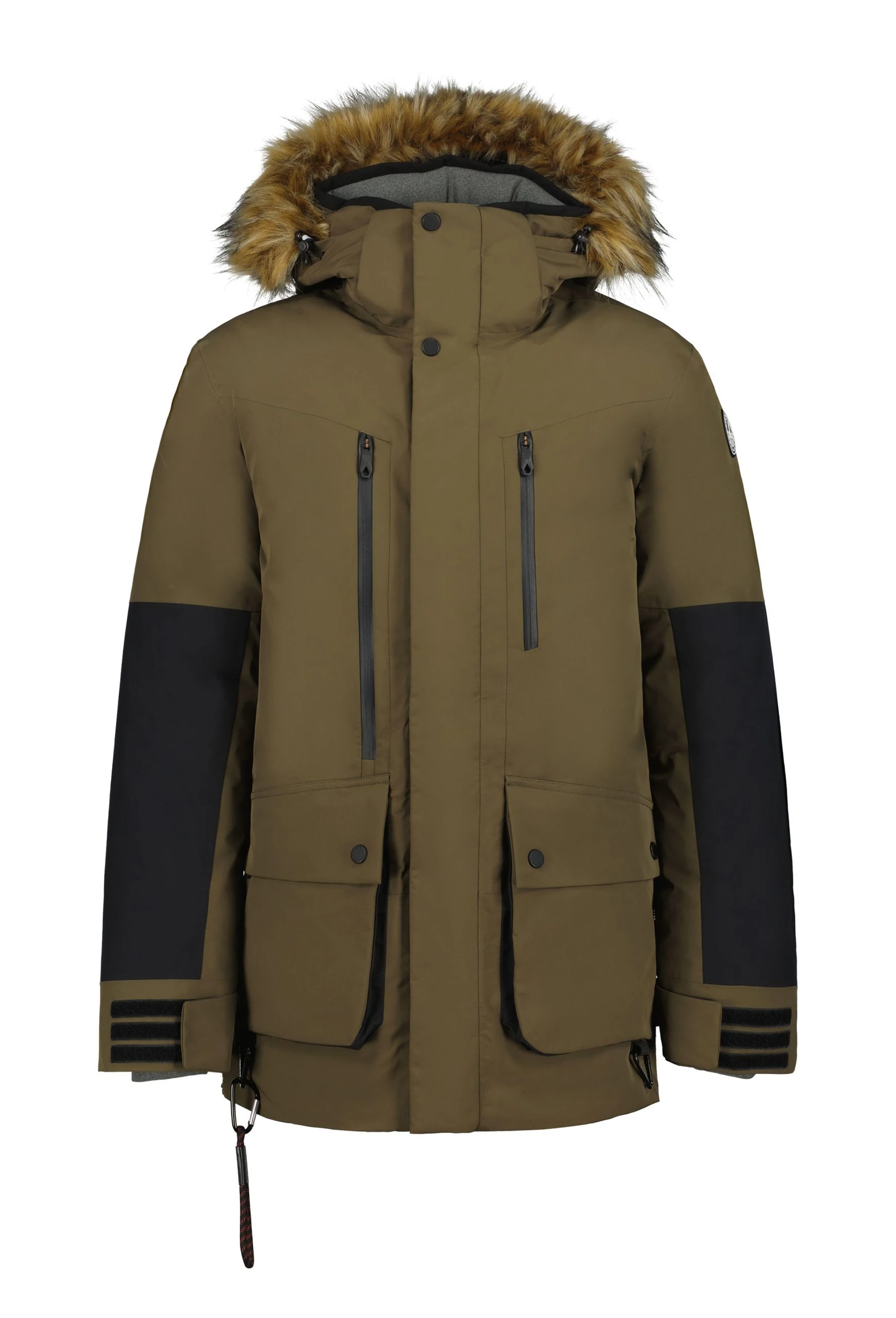 Miesten toppatakki, jossa irrotettava huppu. Hupussa tekoturkis sekä kaksi säätömahdollisuutta. Takissa kaksi etutaskua vetoketjuilla sekä takin ulkopuolella olevat rintataskut. Takki on lämmin ja tuulenpitävä. Lisäksi pintamateriaali on vettähylkivä.