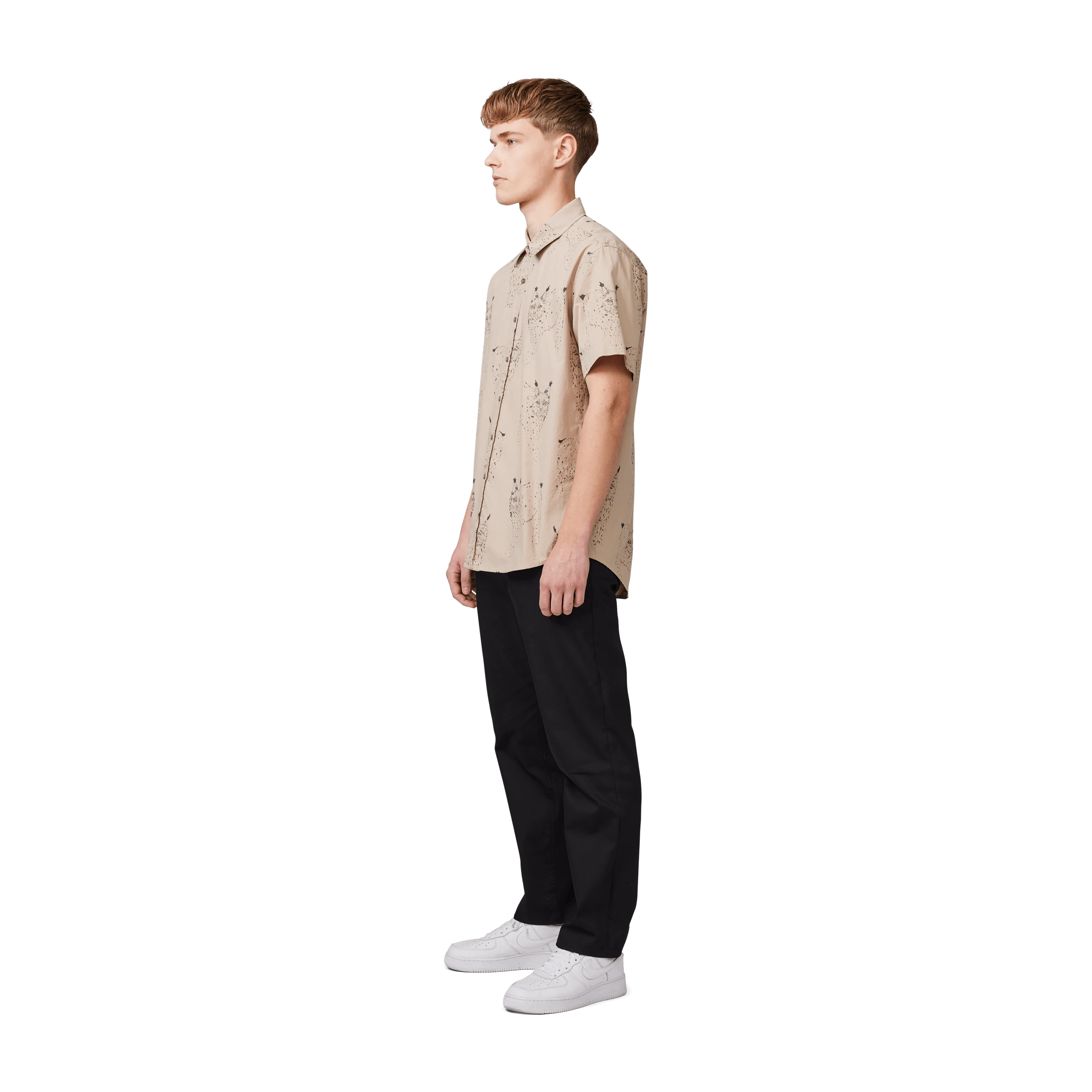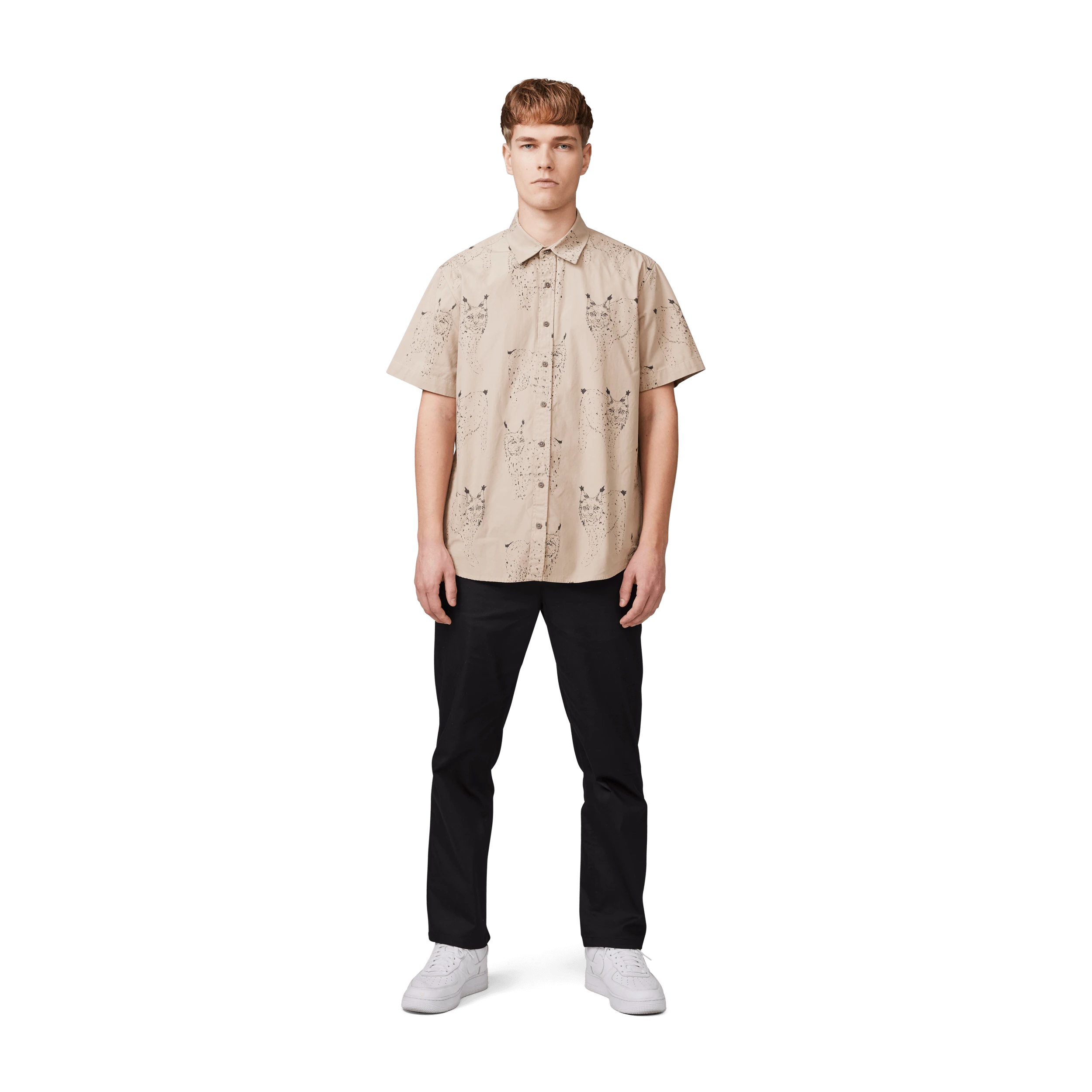 Rento istuva lyhythihainen paita Lynx-kuviolla.
