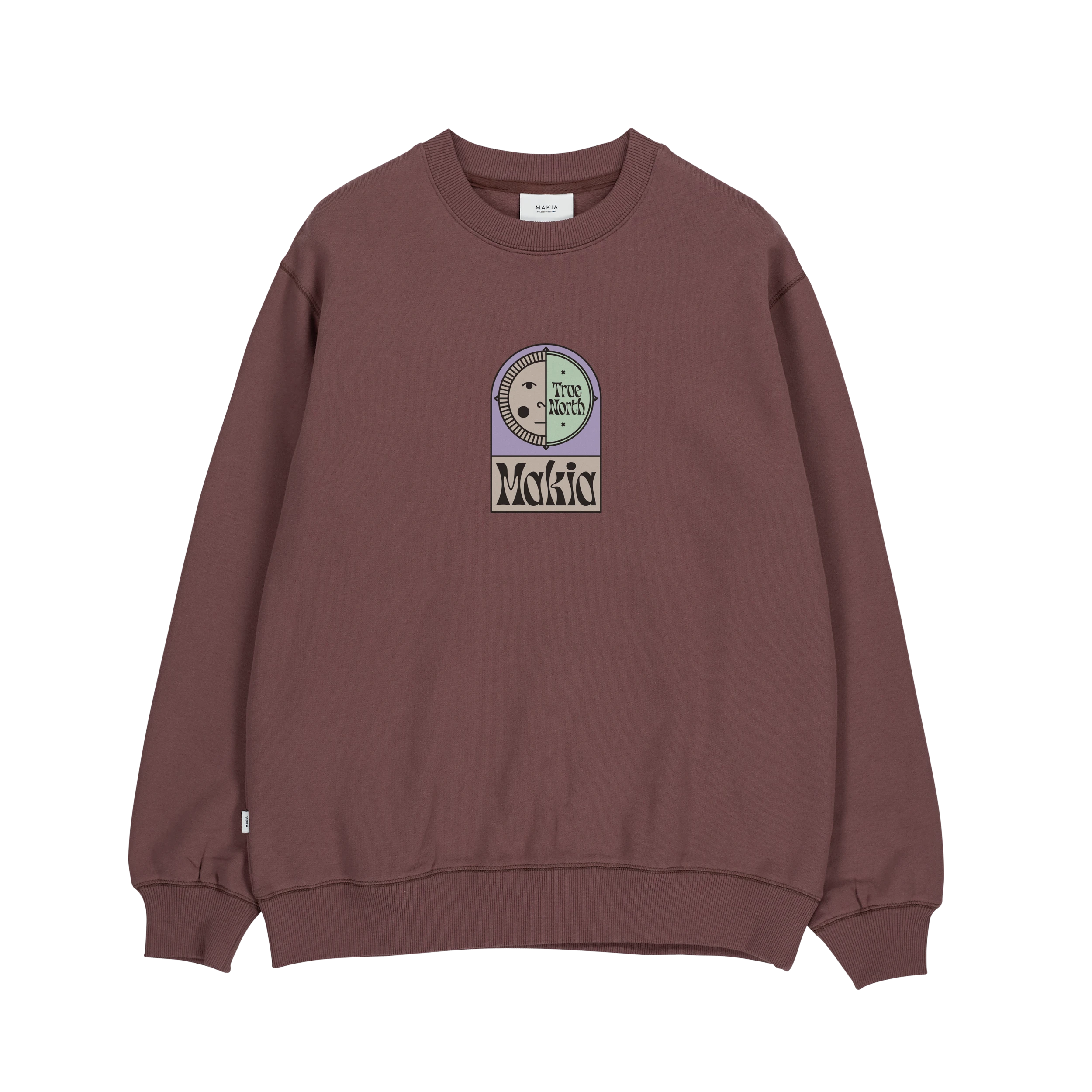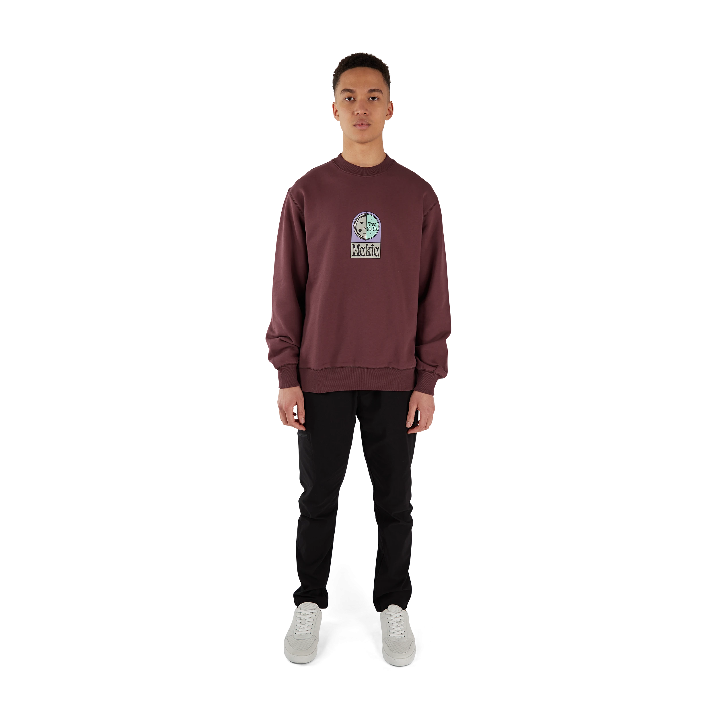 Makia miesten luomupuuvillainen collegepaita. Rinnassa Joonas Janssonin suunnittelema printti. Resori pääntiessä, helmassa ja hihansuissa. Rento istuvuus.