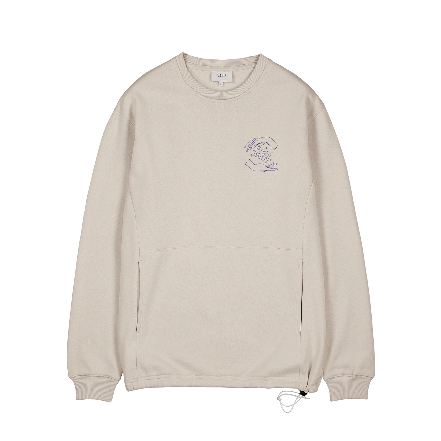 Makian miesten collegepaita, joka valmistettu laadukkaasta luomupuuvillasta. Normaalisti istuva malli, jossa on painatus sekä miehustassa että selässä. Helmassa kiristysnyöri. Pääntiellä ja hihansuissa resorit.