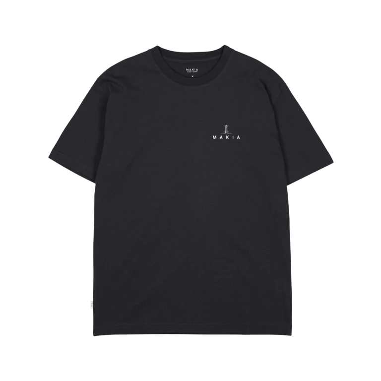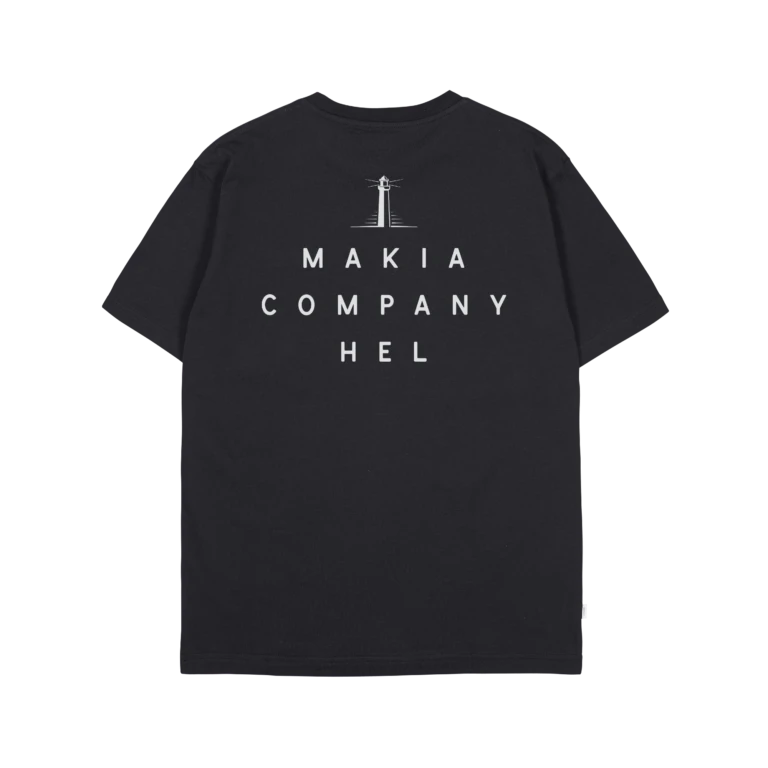 Rento t-paita, jossa edessä on pieni Makian logo. T-paidan takana tekstiä.