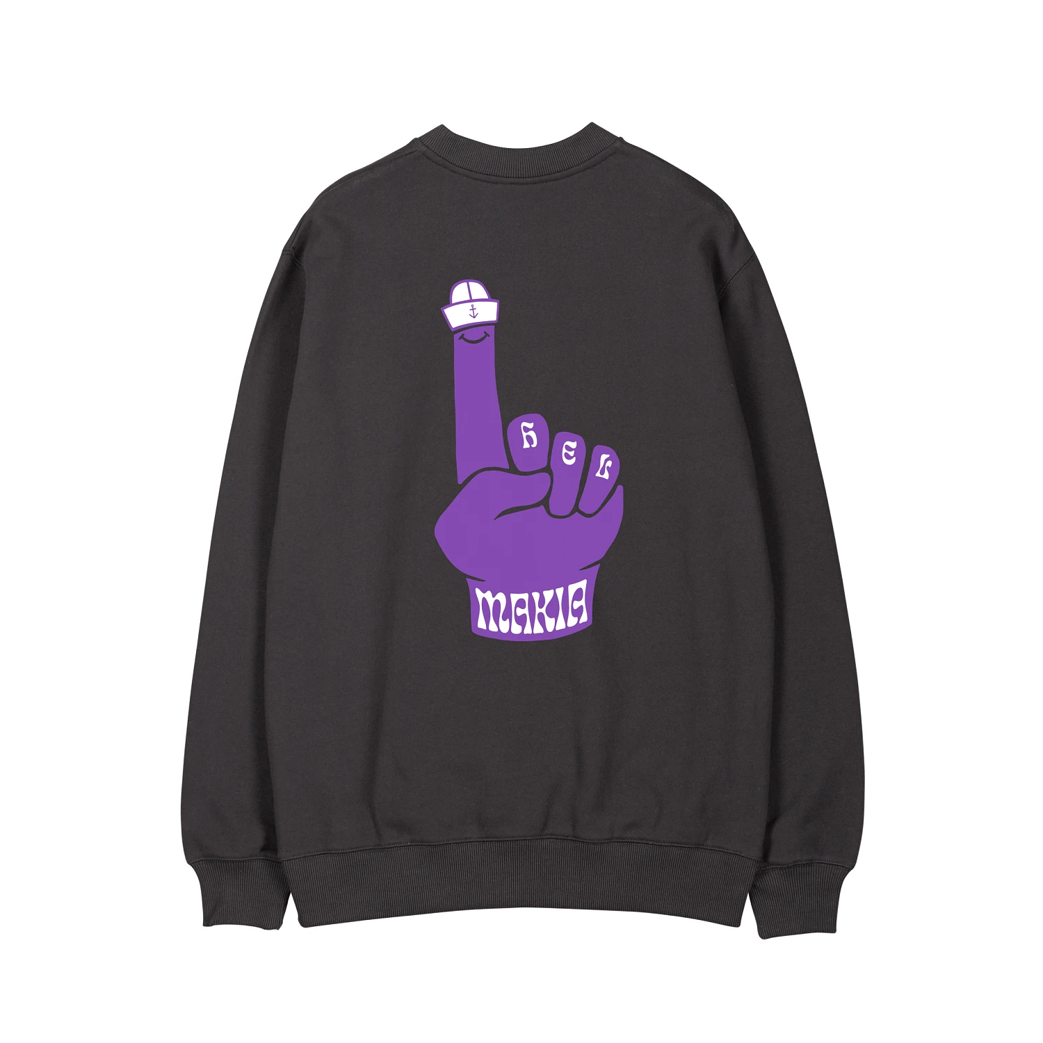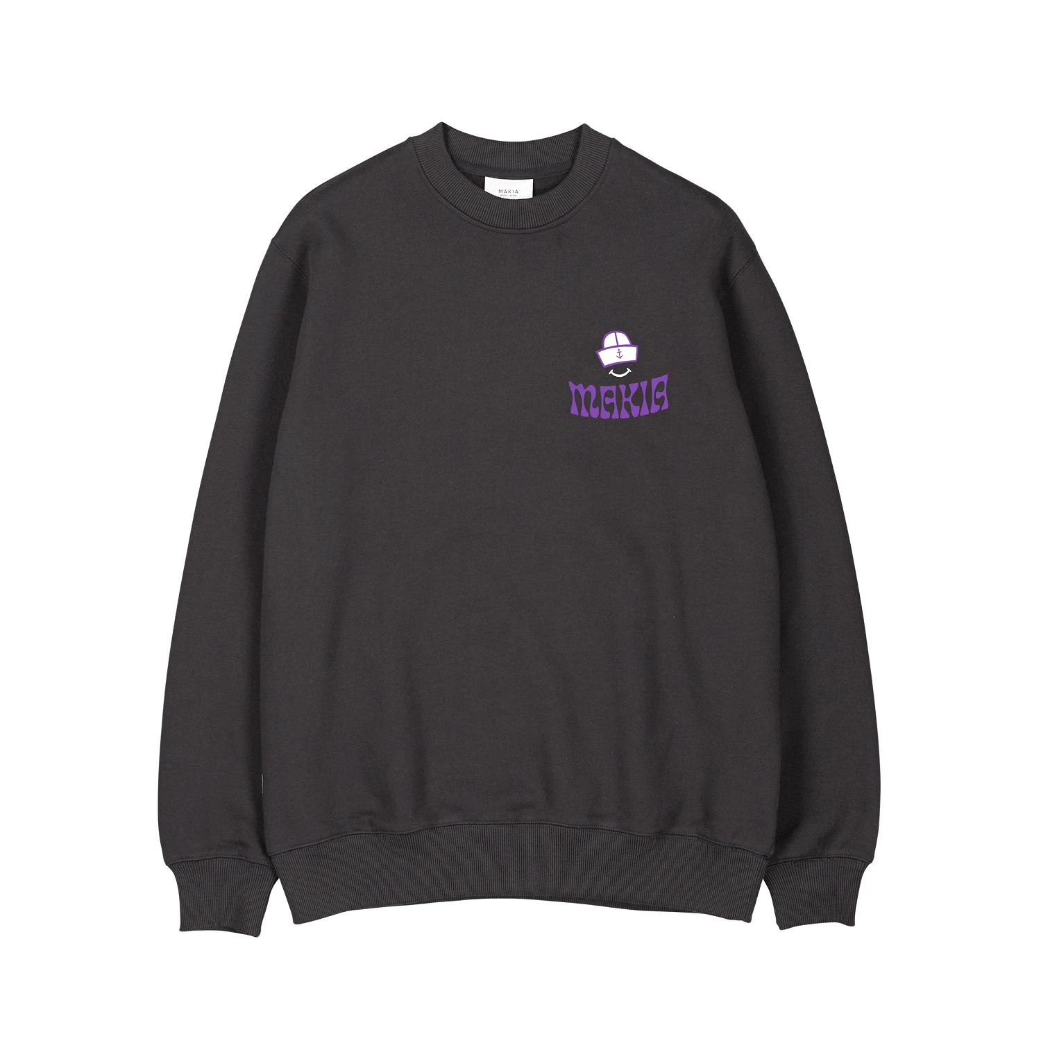 Makian rennosti istuva unisex college, jossa pitkät hihat. Valmistettu pehmeästä ja laadukkaasta luomupuuvillasta. Selässä näyttävä Sailor-painatus, miehustassa Makian logo. Resorit pääntiellä, helmassa ja hihoissa.