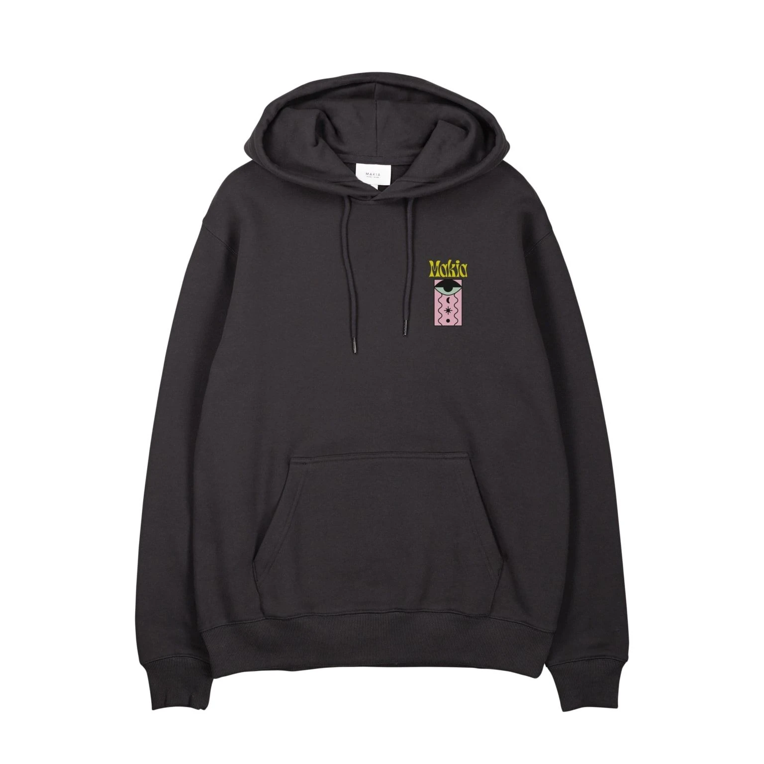 Makia unisex luomupuuvillainen huppari. Rinnassa ja selässä Joonas Janssonin suunnittelema kuva. Säätönauhallinen huppu ja kengurutasku. Istuvuus naisille löysähkö ja miehille rento.
