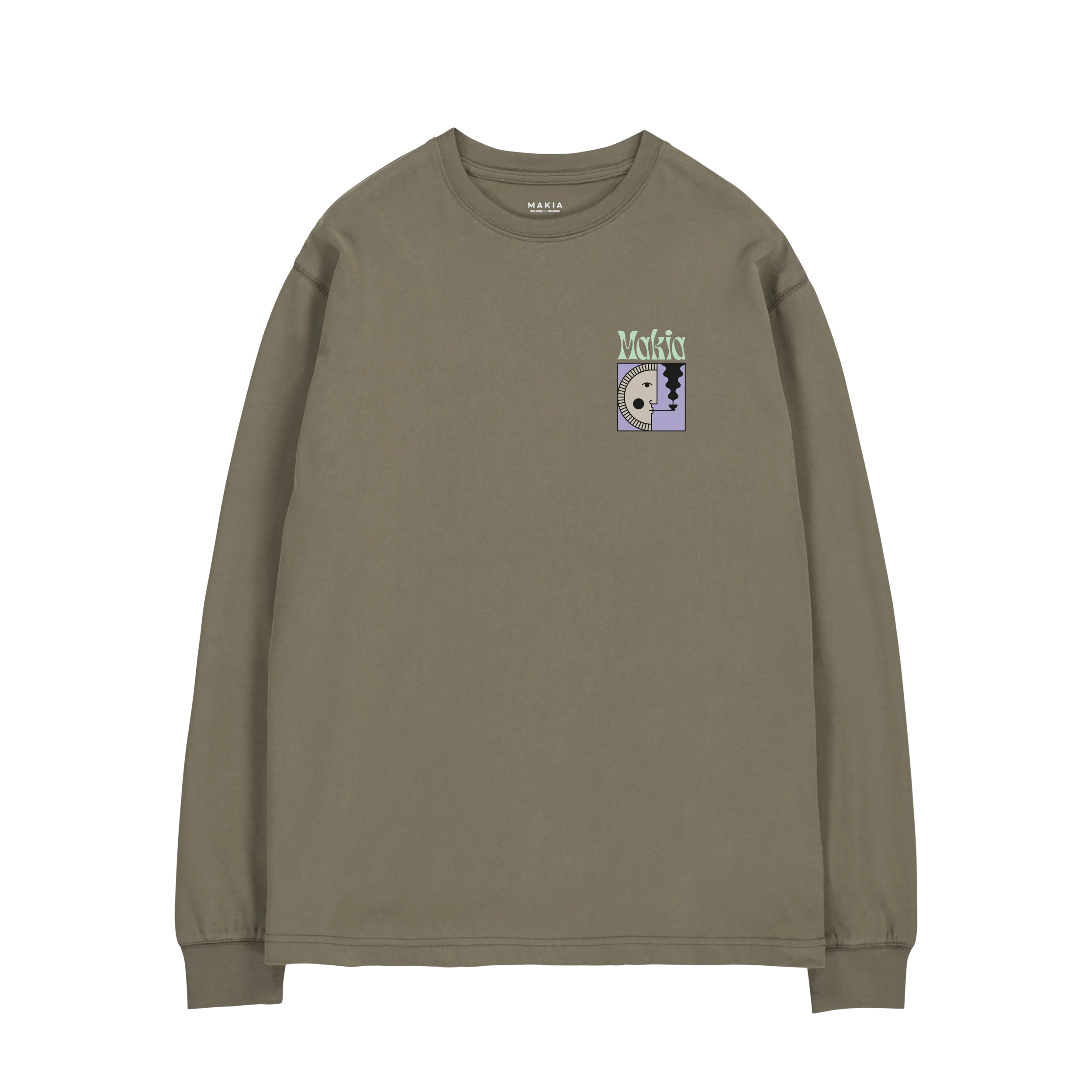Makia unisex luomupuuvillainen pitkähihainen paita. Rinnassa Joonas Janssonin suunnittelema printti. Resori pääntiessä ja hihansuissa. Yleisiin kokotualukoihin verrattuna istuvuus miehille rento ja naisille löysähkö.
