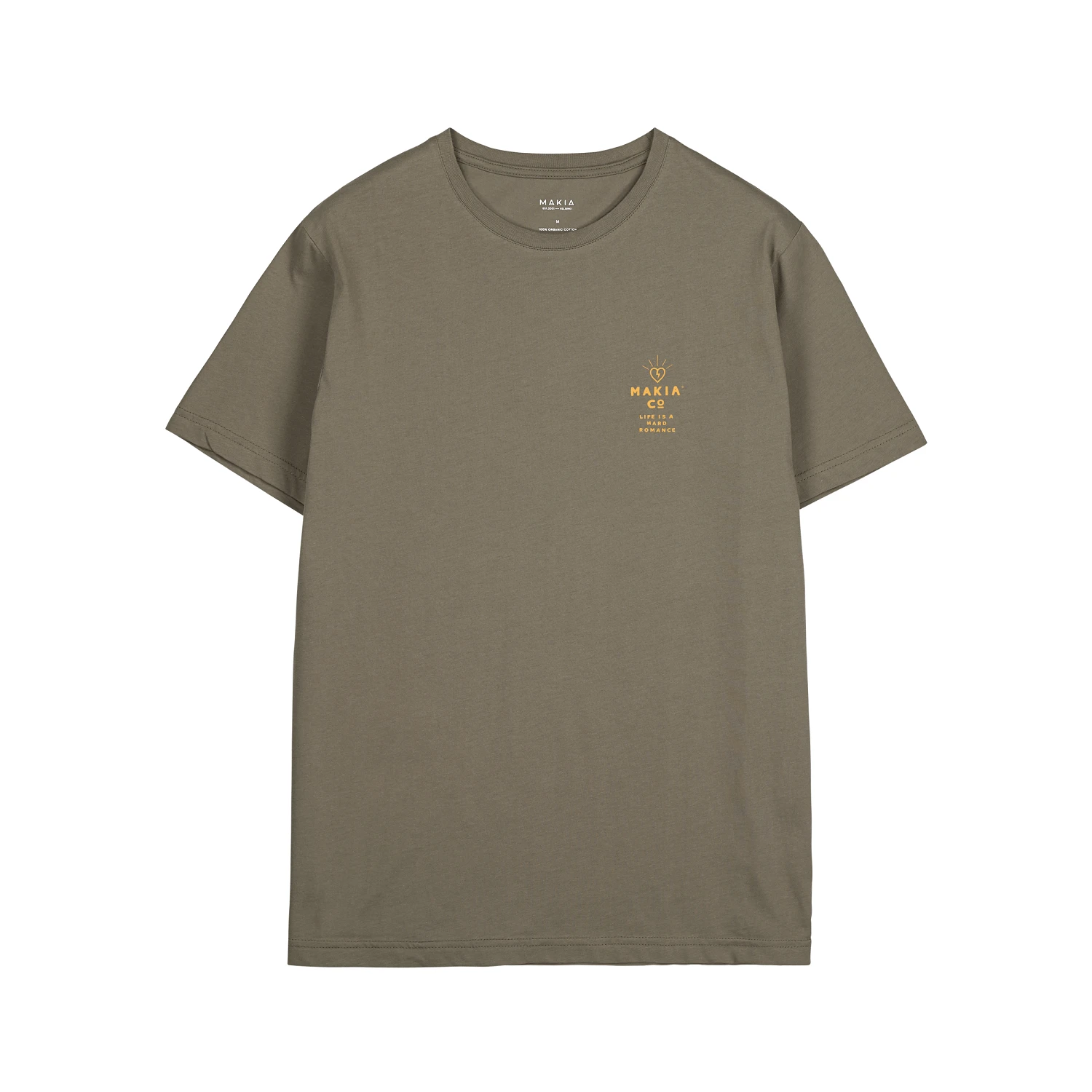 Makian rento ja väljänmallinen t-paita, joka on valmistettu luomupuuvillasta. Pyöreä pääntie. Painettu logo rinnassa.