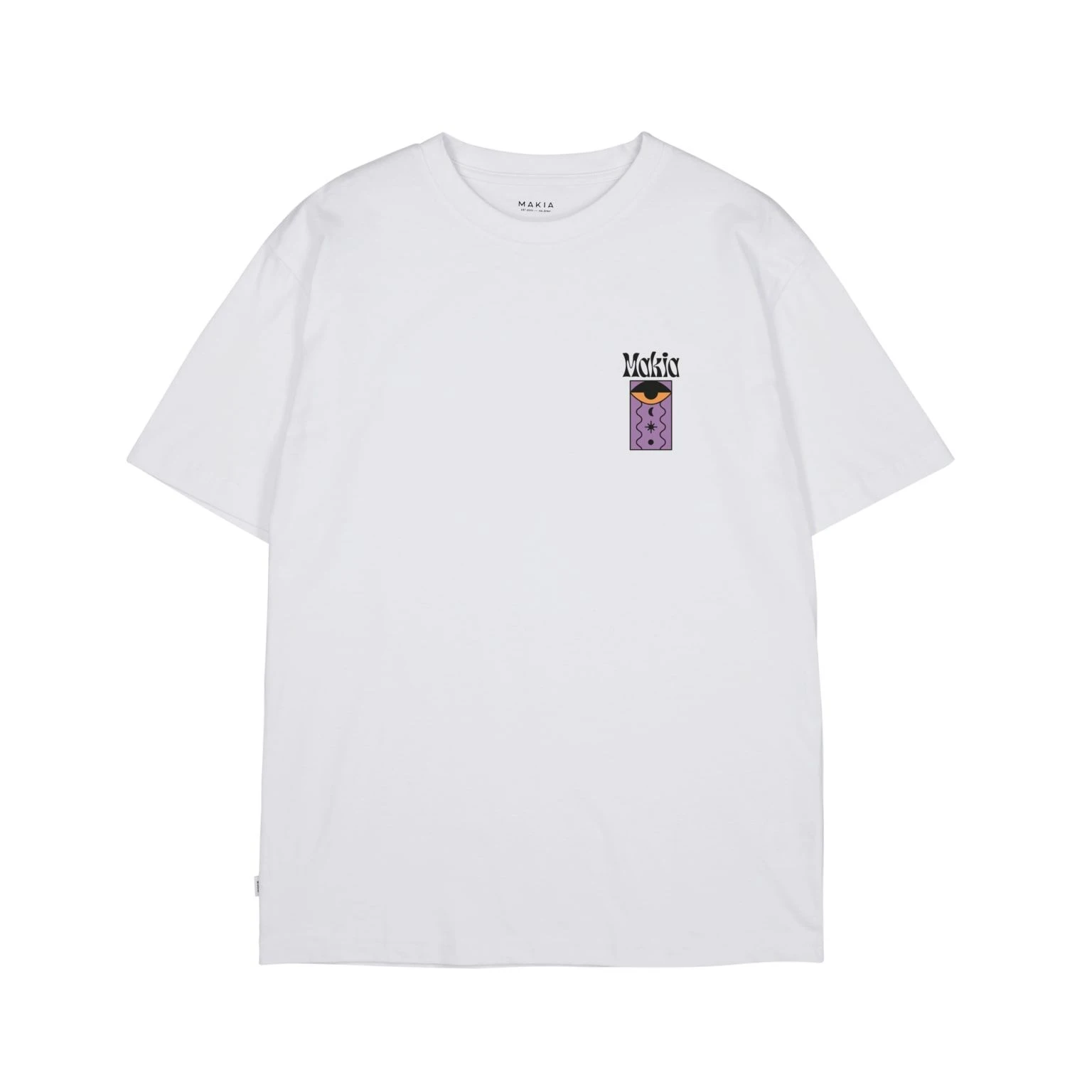 Makia unisex luomupuuvillainen t-paita. Rinnassa ja selässä Joonas Janssonin suunnittelema printti. Rento olkapäälinja. Verrattuna yleisiin kokotaulukoihin istuvuus miehille rento ja naisille löysähkö.