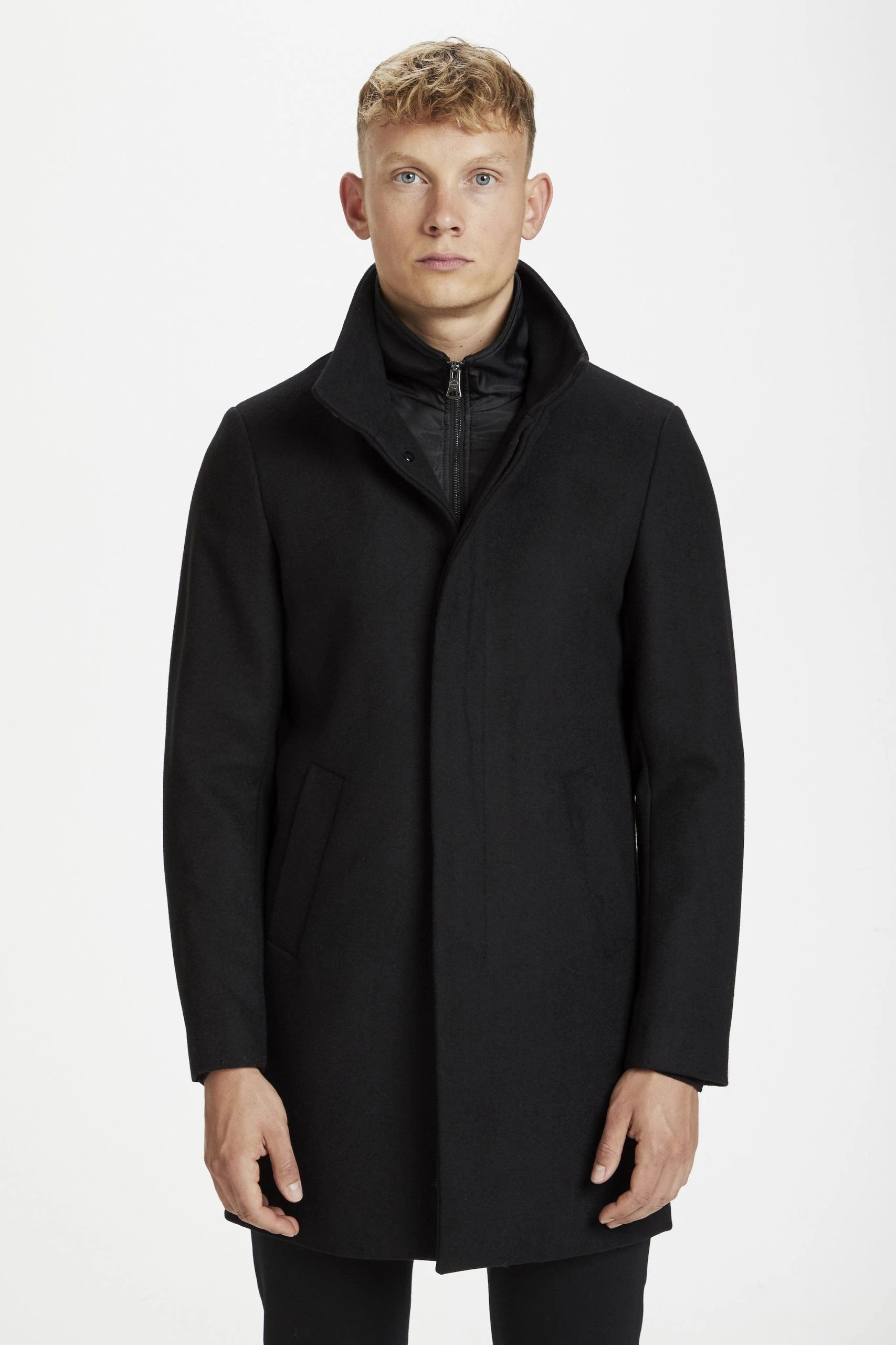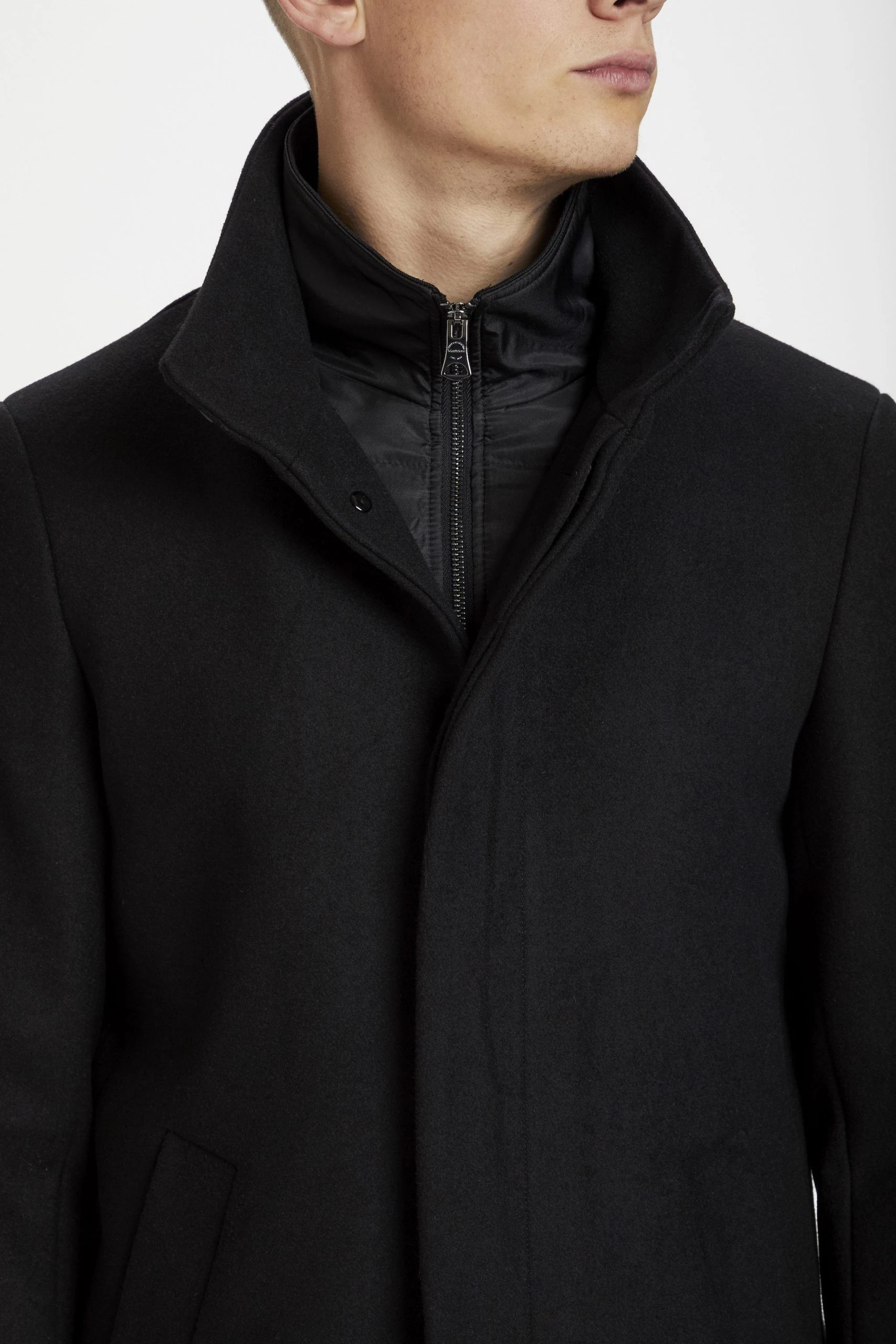 Matinique miesten korkeakauluksinen takki irroitettavalla sisäosalla. Kestävää villasekoitusta. Piilotetut napit takaavat tyylitellyn ilmeen. Vetoketjullinen sisätasku.