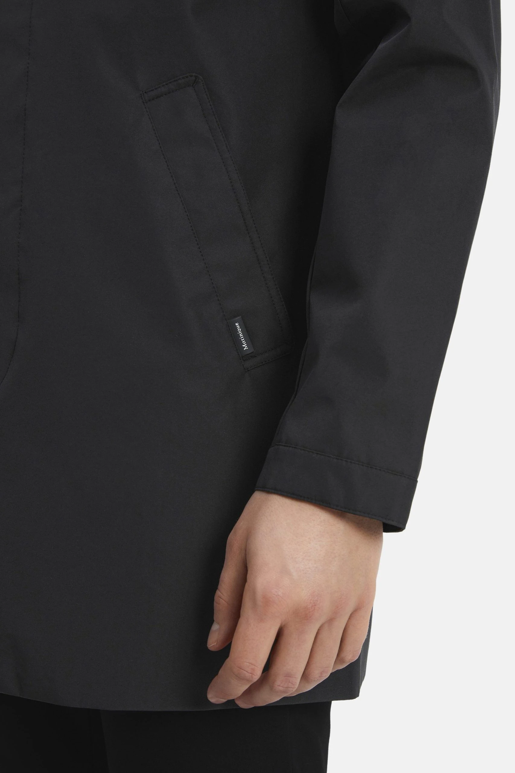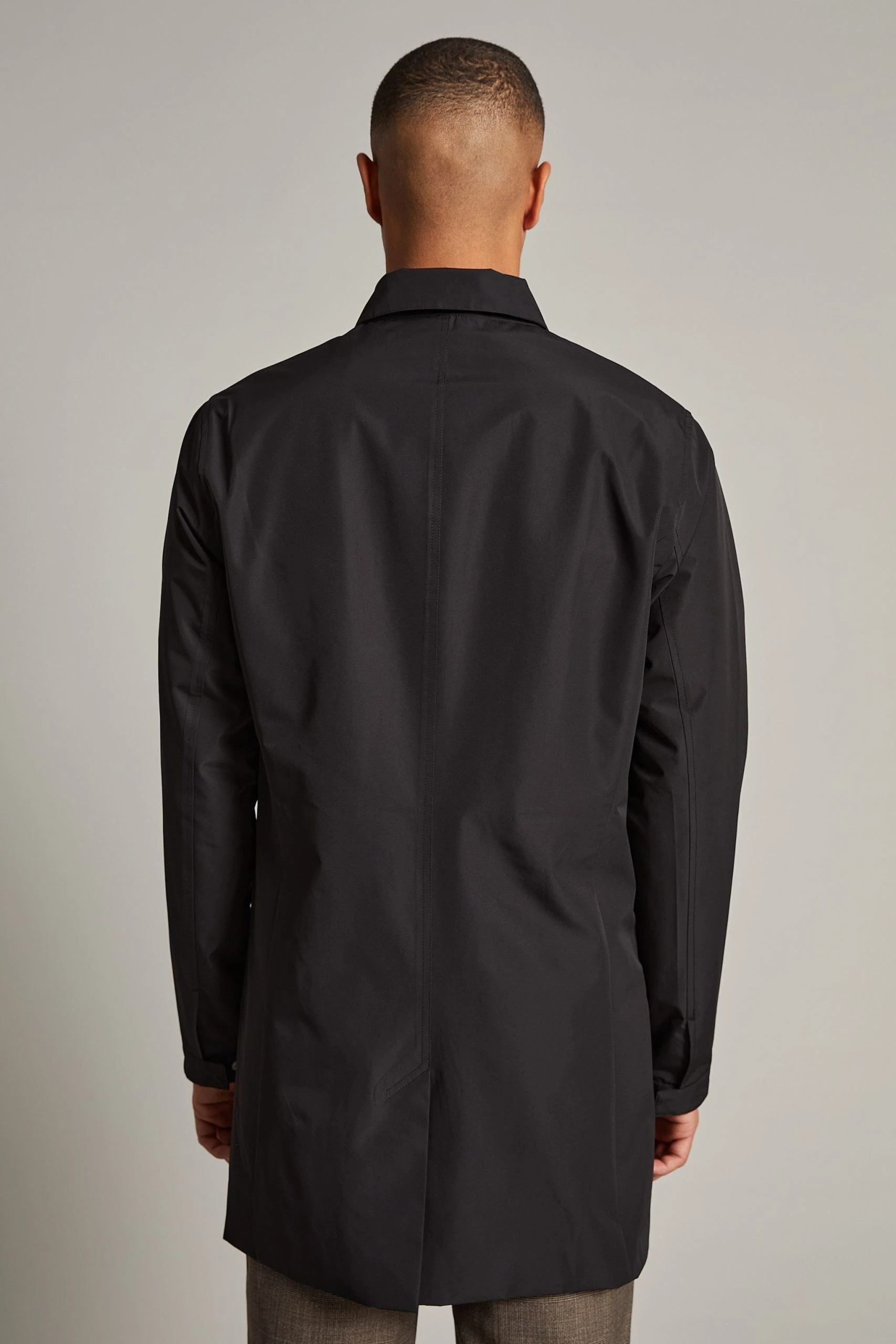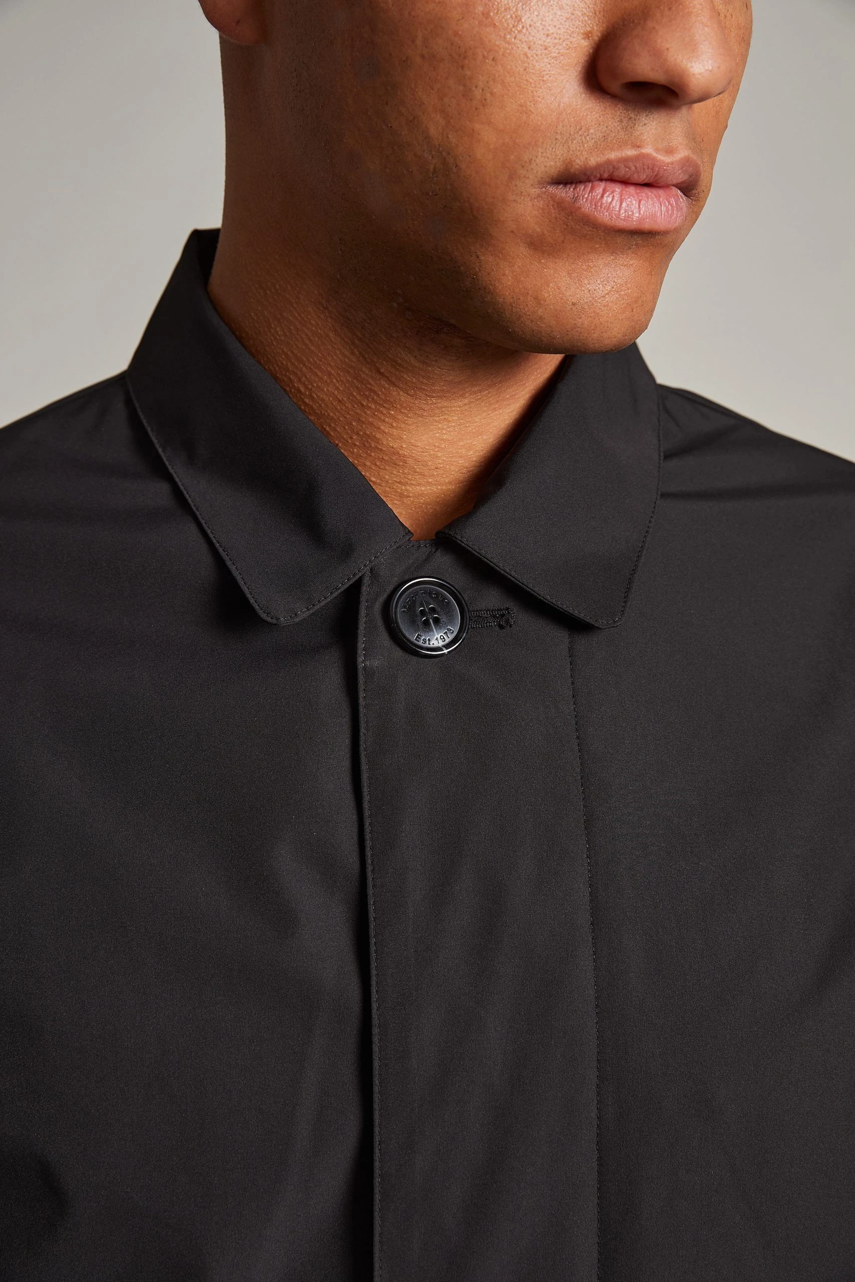 Miesten paitakauluksinen kevättakki vettähylkivää ja hengittävää osin kierrätettyä materiaalia. Edessä piilonapitus. Normaali istuvuus.