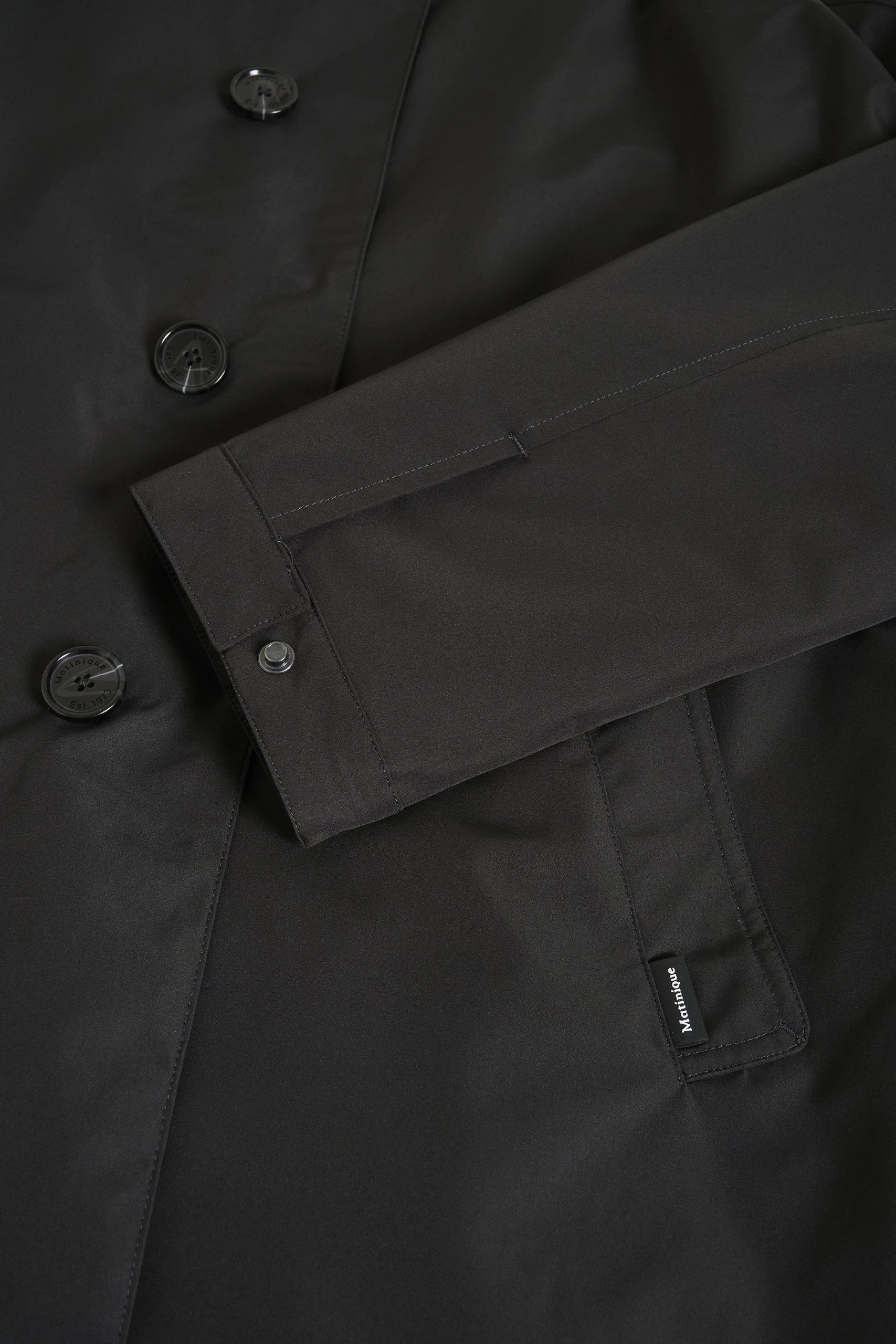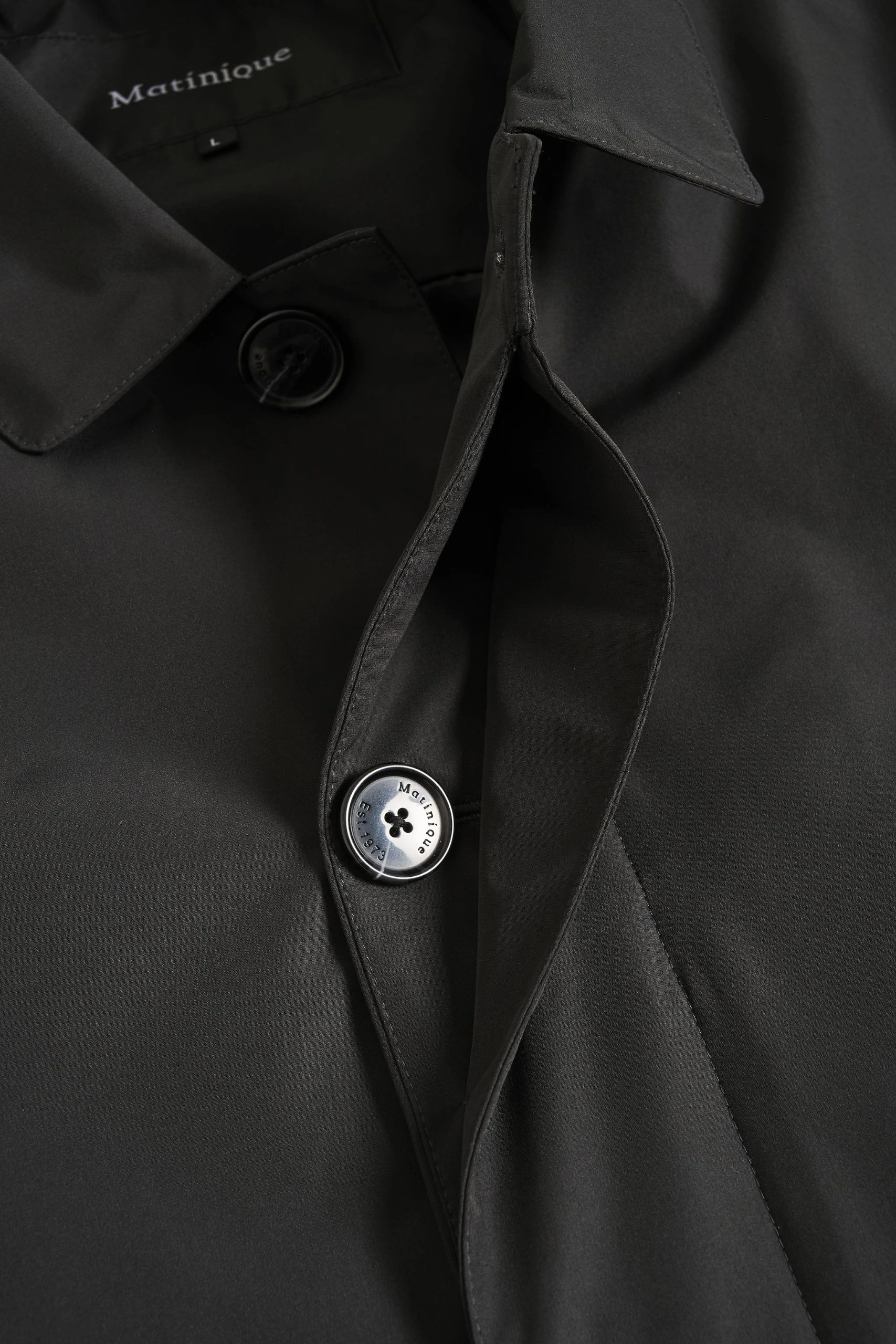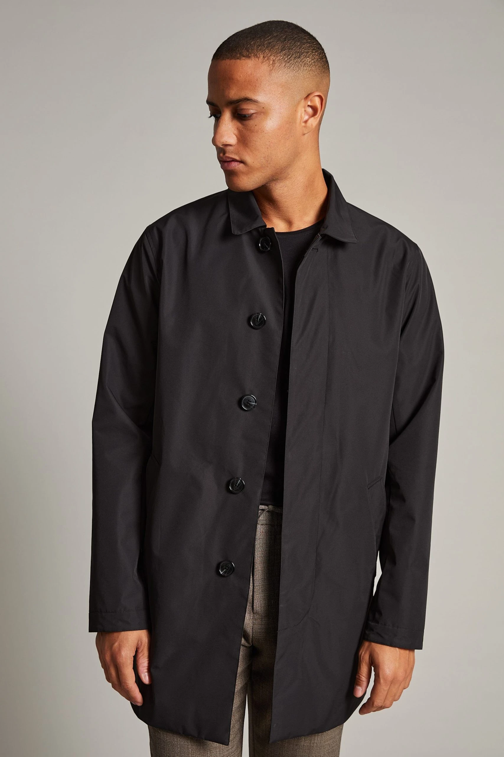 Miesten paitakauluksinen kevättakki vettähylkivää ja hengittävää osin kierrätettyä materiaalia. Edessä piilonapitus. Normaali istuvuus.