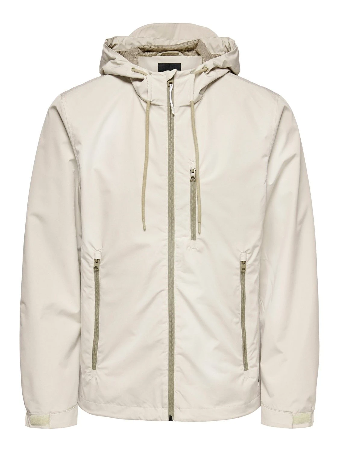 ONLY & SONS kevättakki. Sporttinen malli, joka on helppo yhdistää kevään asuihin. Vettä ja tuulta hylkivä pinta. Kiristysnauhat helmassa. Vetoketjukiinnitys, kahdet vetoketjulliset etutaskut sekä povitasku. Hupussa verkkovuori. Lämpöasteikko 2/5.