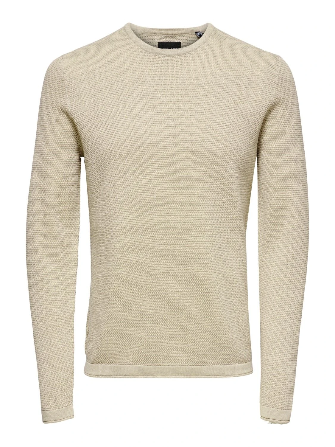 Only & Sonsin puuvillainen neulepaita. Pyöreä pääntie ja kapeat resorit hihoissa, pääntiellä ja helmassa. Materiaali on hieman kohotettua neulosta. pehmeä neule, joka on yksi syyskauden tyylikkäimmistä valinnoista!
