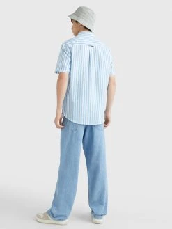 Tommy Jeans, Miesten Kauluspaita, RLX SS STRIPE LINEN SHIRT Raidallinen Sininen