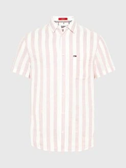 Tommy Jeans Miesten Kauluspaita TJM LINEN BLEND STRIPE SHIRT Raidallinen Pinkki