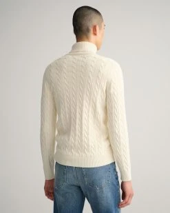 Gant Miesten Neule, Cotton Cable Turttle Neck Valkoinen