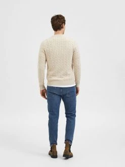 Selected Miesten Neulepusero, K REMY KNIT ROLL Luonnonvalkoinen