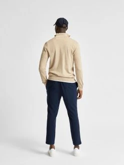 Selected Miesten Puuvillaneuletakki, Berg Full Zip Cardigan Vaalea Beige