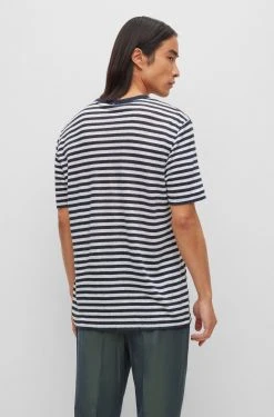 Hugo Boss T-paita, TIBURT 350 LINEN T-SHIRT Raidallinen Sininen