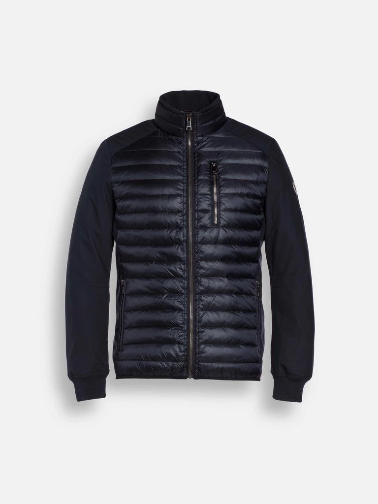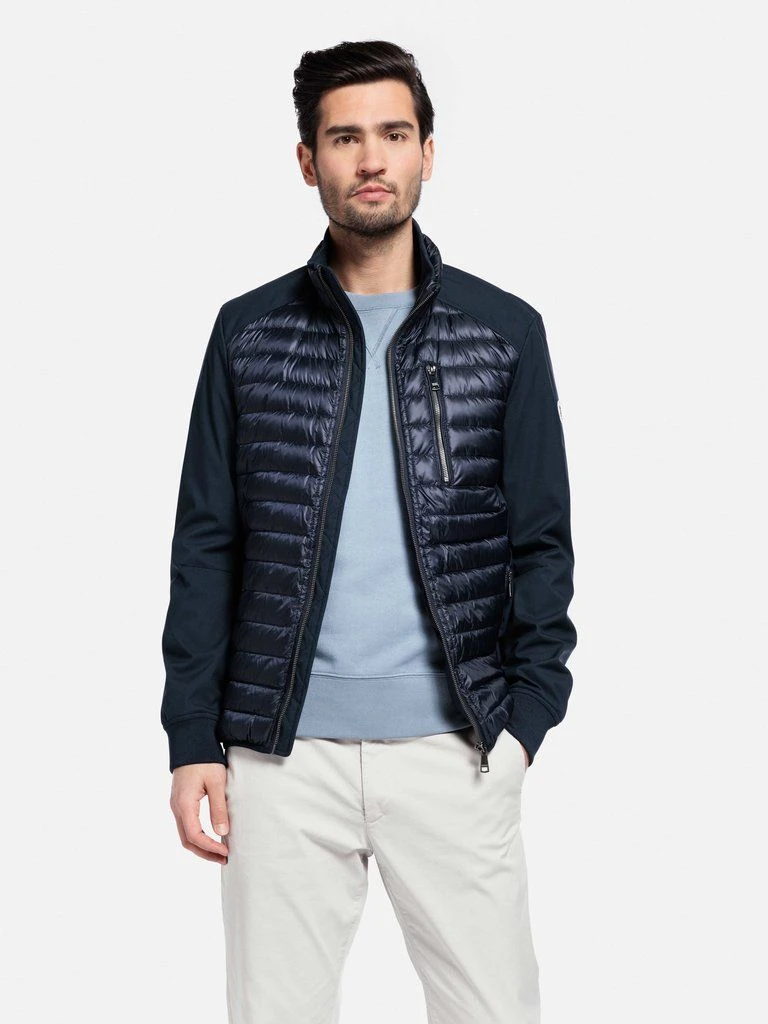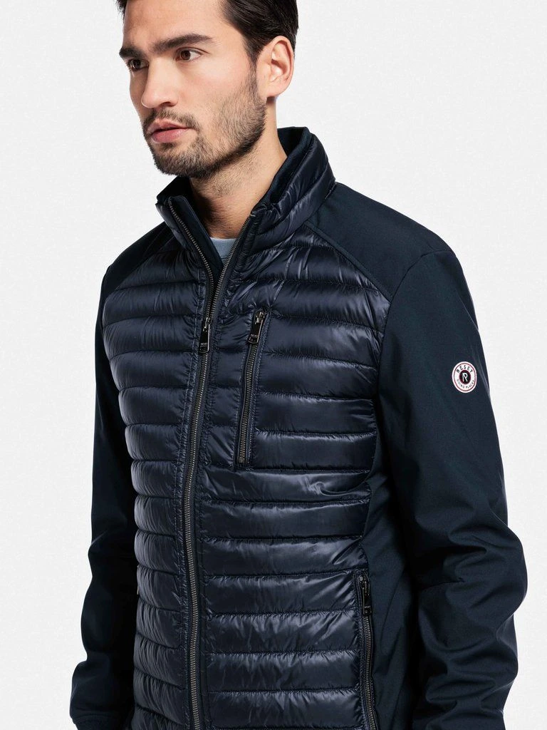 Takin etu- ja takaosa ovat tikattua polyamidikangasta, olkapäät, hartiat, sivukappaleet ja hihat softshelliä. Normaali istuvuus, sisäpuolelta neulottu kaulus, takki suljetaan vetoketjulla, vetoketjun alla suojaava tuulilista. Sivuilla vetoketjulliset taskut, yksi vetoketjullinen rintatasku. Yksi vetoketjullinen sisätasku. Sporttinen takki jokapäiväisen tyyliin. Normaali istuvuus.