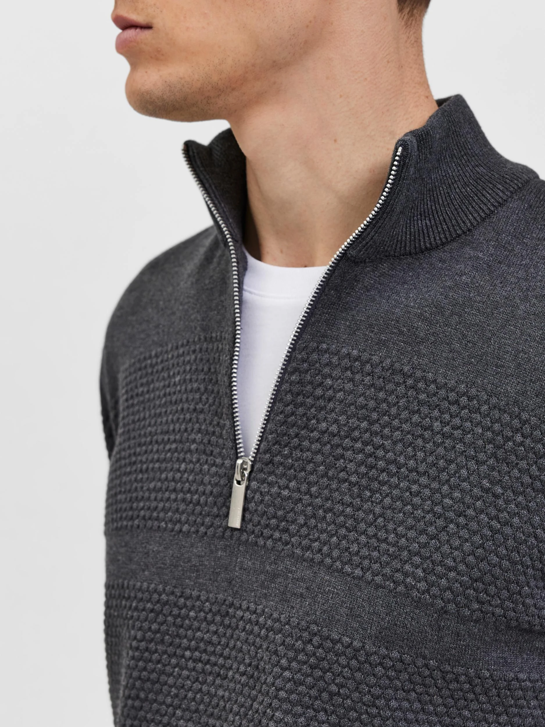 Selected miesten neulepusero korkealla kauluksella. Lämmin valinta loppuvuoteen upeilla kuplaommelyksityiskohdilla!
