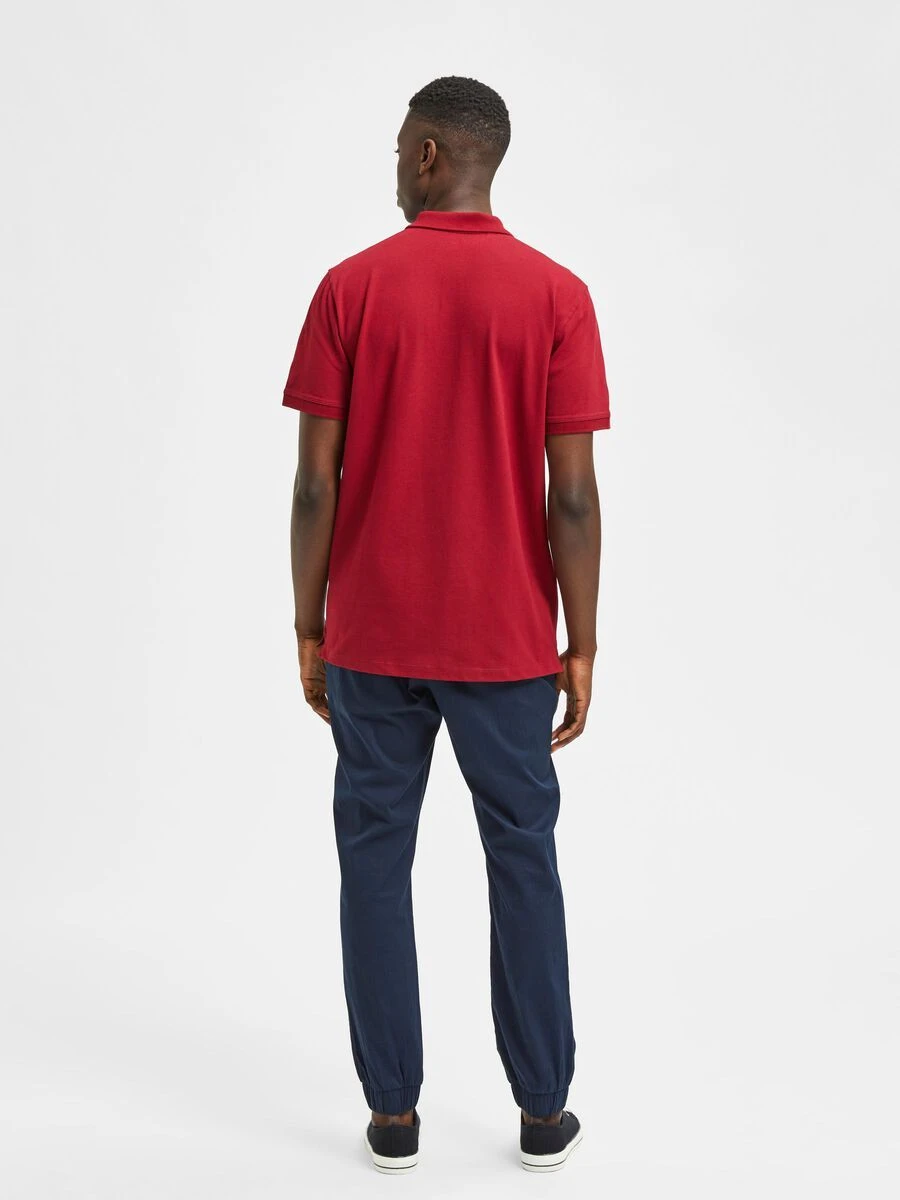 Miesten pikeepaita, edessä nappilista, pudotetut olkapäät. Brodeerattu Selected Homme -logo rinnassa. Normaali istuvuus.