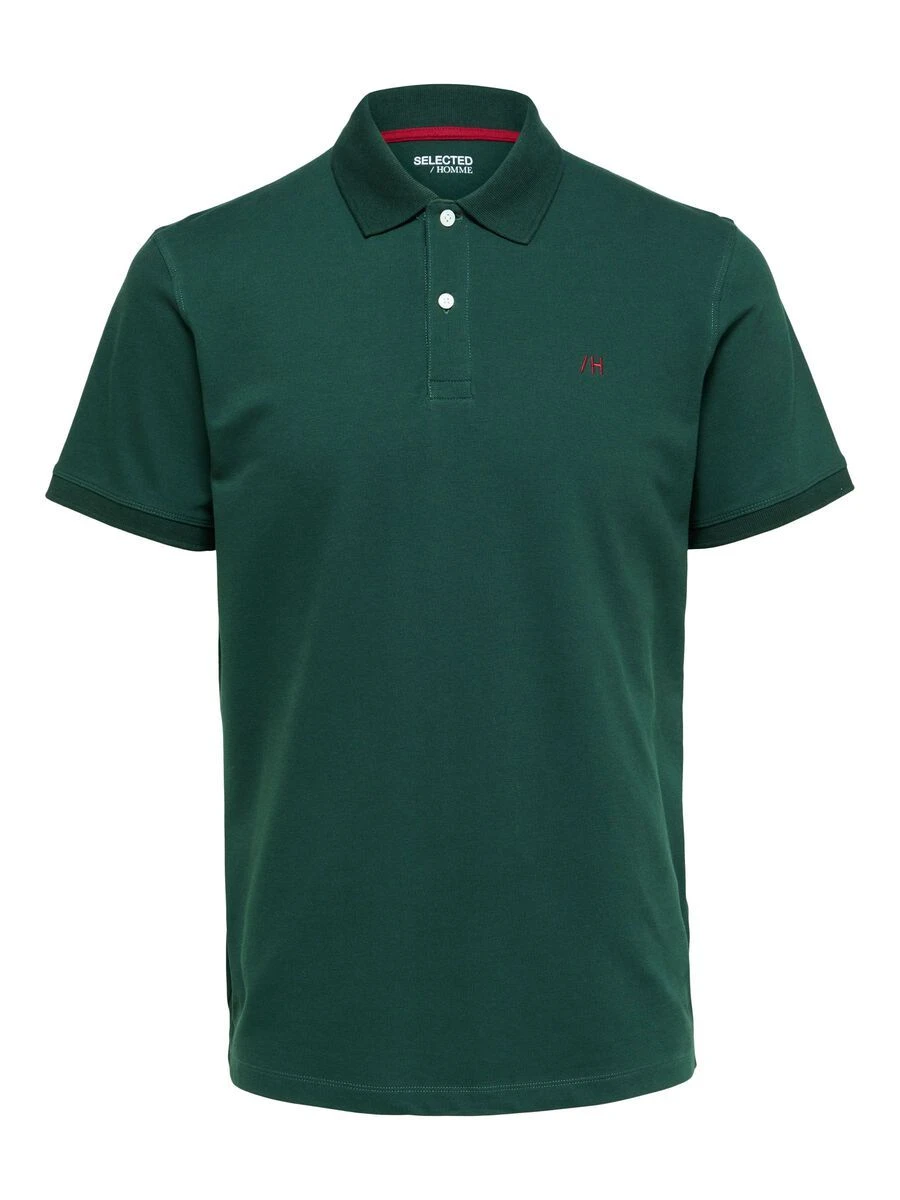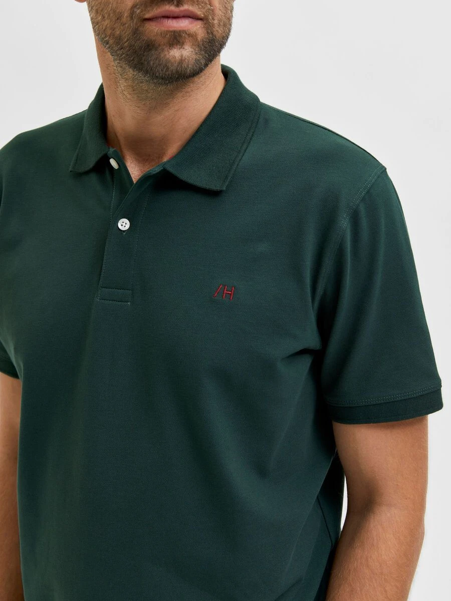 Miesten pikeepaita, edessä nappilista, pudotetut olkapäät. Brodeerattu Selected Homme -logo rinnassa. Normaali istuvuus.