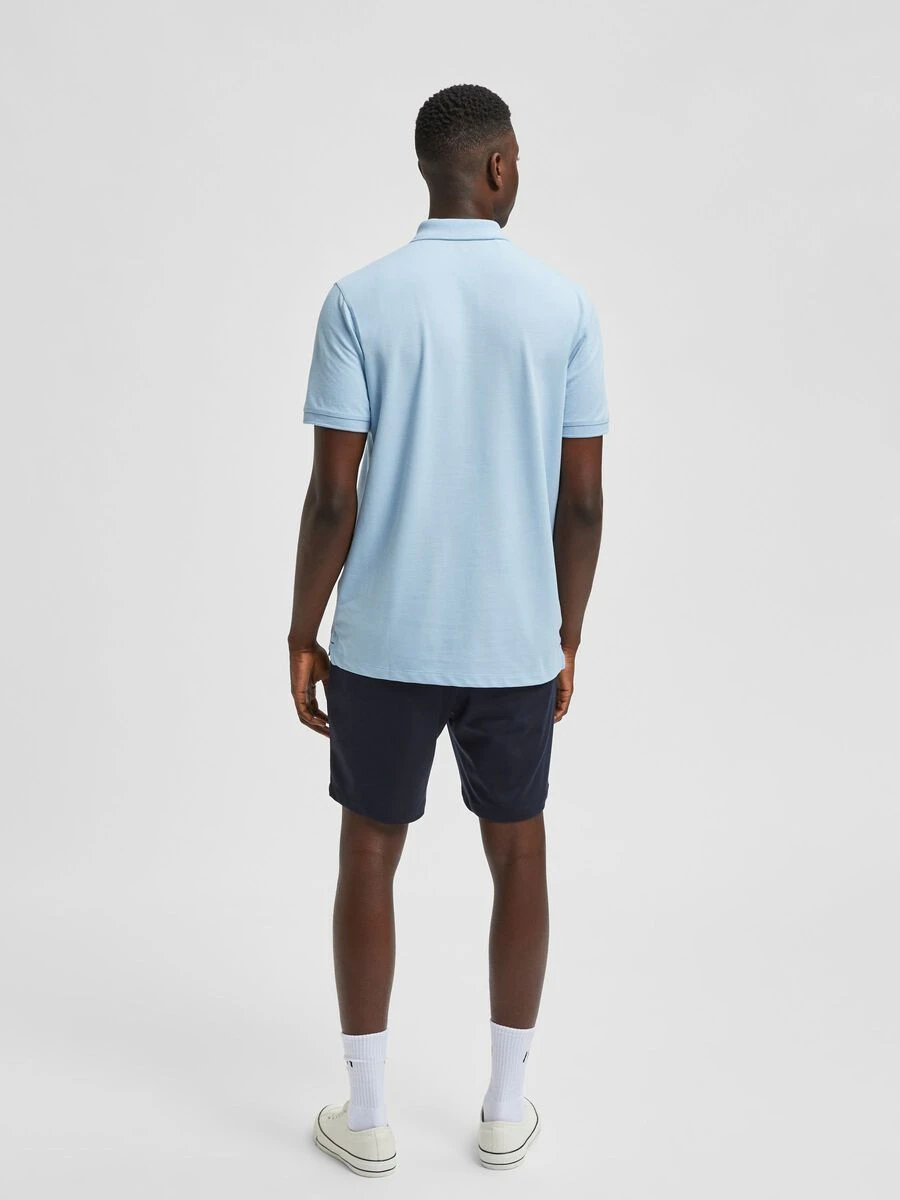 Miesten pikeepaita, edessä nappilista, pudotetut olkapäät. Brodeerattu Selected Homme -logo rinnassa. Normaali istuvuus.