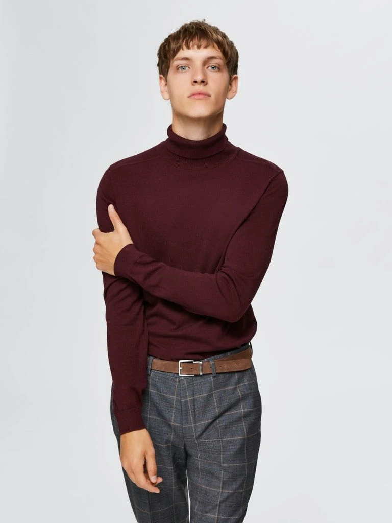 Selected Hommen tyylikäs miesten pooloneule. Pitkät hihat ja korkea, käännettävä poolokaulus. Hihansuissa, helmassa ja pääntiellä joustinneulosta. Materiaali miellyttävää puuvillaa.