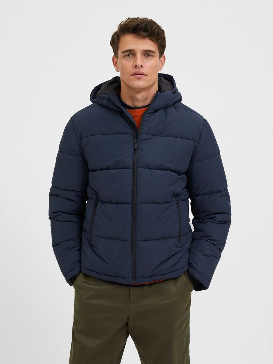 Miesten puffer-takki. Takki on pehmeä ja lämmin. Takissa vetoketjulliset sivutaskut sekä kaksisuuntainen vetoketju edessä.