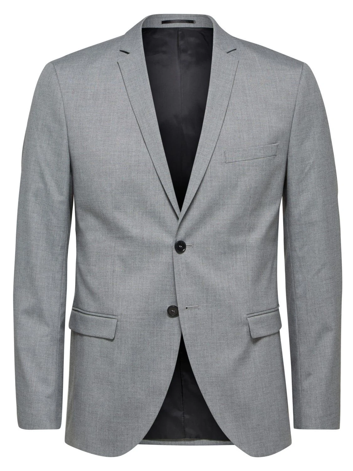 Selectedin harmaasävyinen, tyylikäs bleiseri. Kaksi napillista povaria, sivuhalkiot.