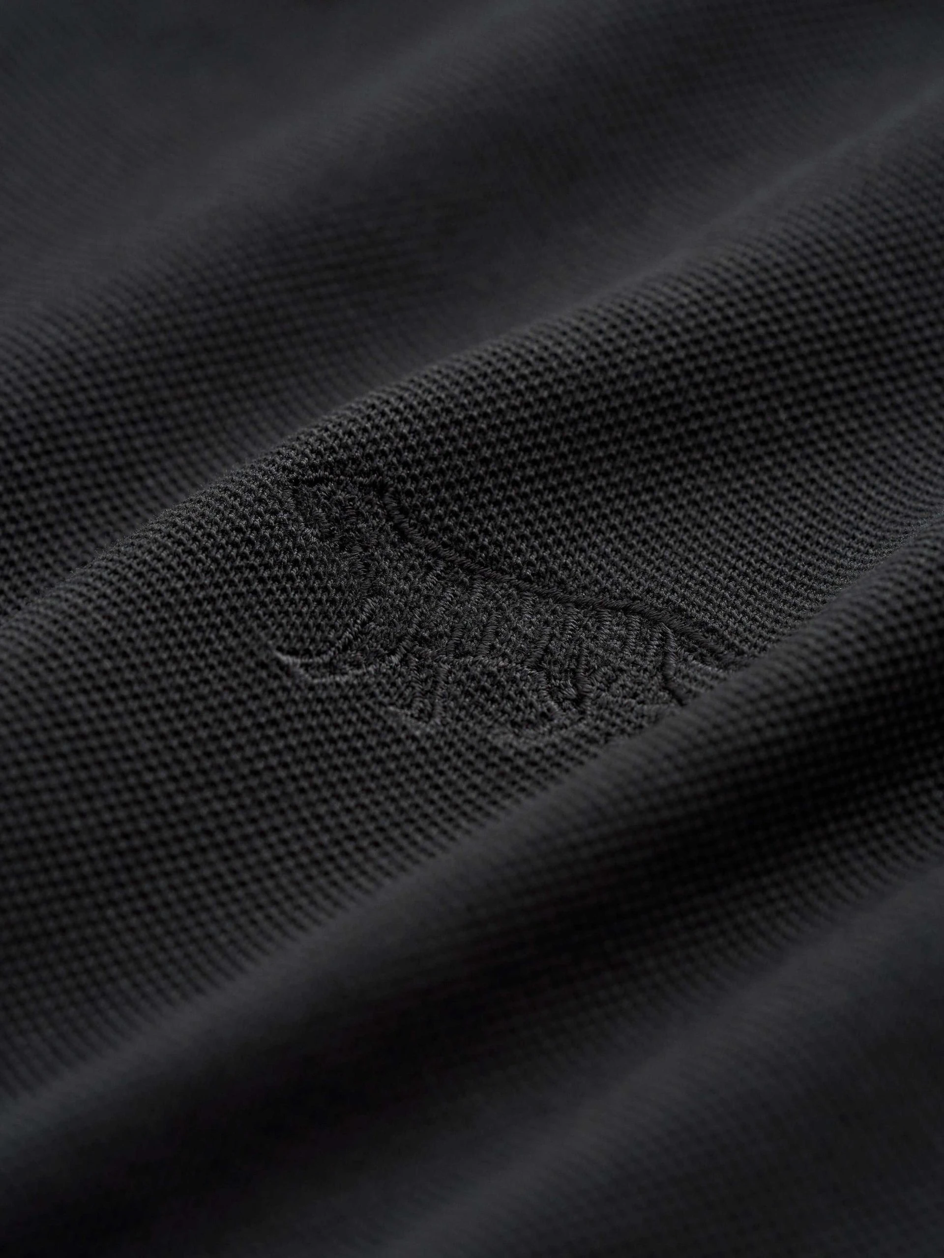 Miesten lyhythihainen puuvillapikeepaita, kapea istuvuus. Pikeekaulus ja edessä nappihalkio. Logokirjonta rinnassa. Sivuilla helmassa pienet halkiot.