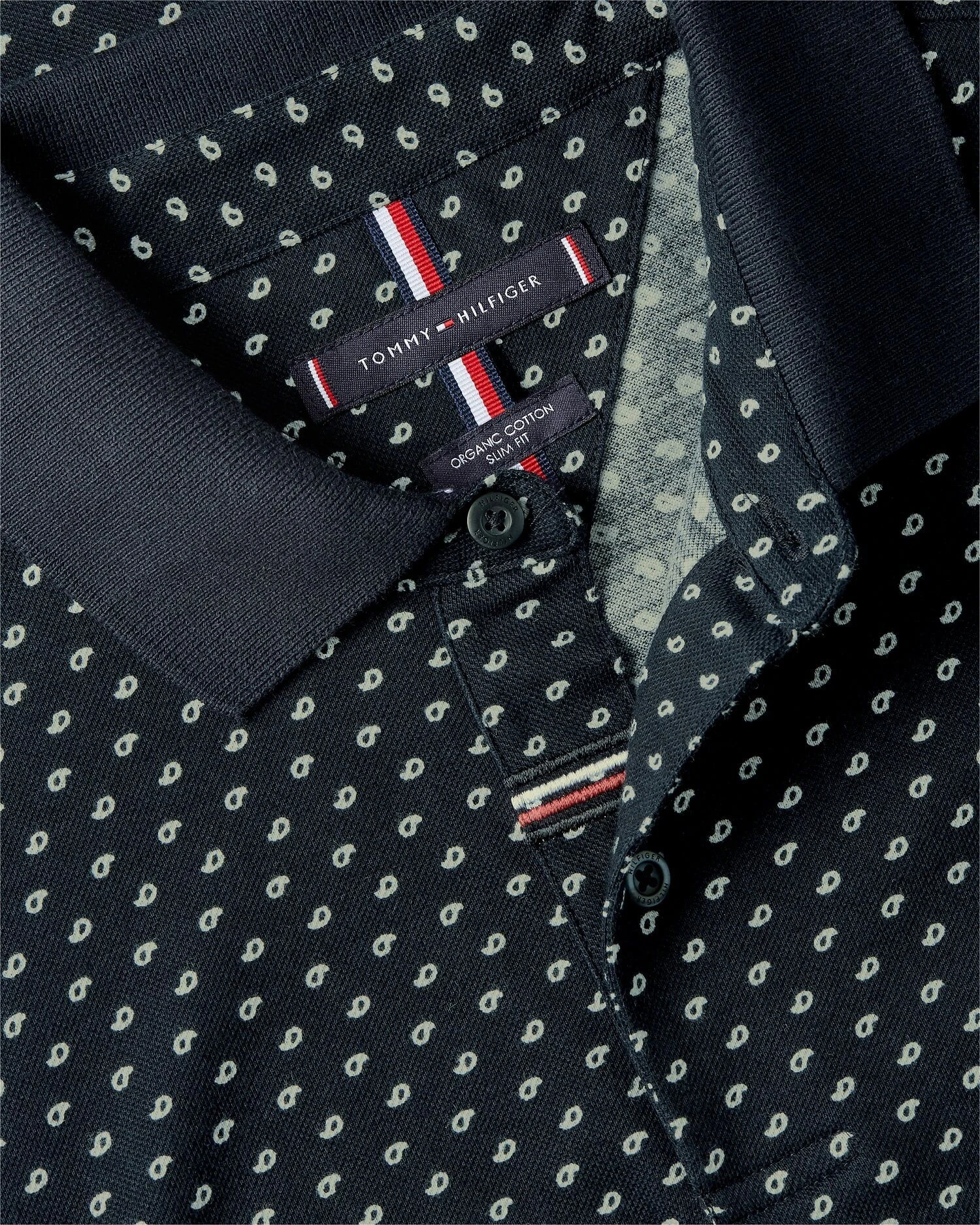 Tommy Hilfigerin tyylikäs kauluspaita, jossa pääntiellä kahden napin napitus ja rinnassa Tommy Hilfiger -logo. Lyhyet hihat ja suora malli. Paidassa näyttävä kuviointi.