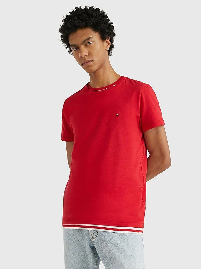 Tommy Hilfigerin rento, yksivärinen t-paita. Pyöreä pääntie, kapealinjainen malli ja pieni lippulogo rinnassa. Valmistettu pehmeästä ja joustavasta luomupuuvillasta.