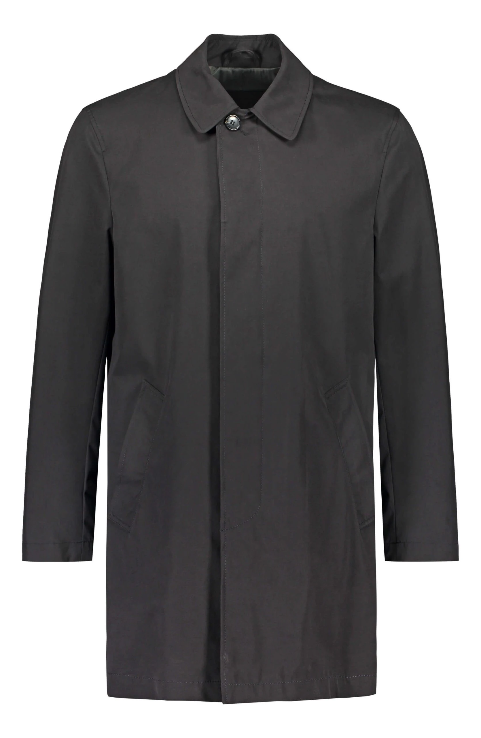 Miesten tyylikäs, pikkutakin peittävä kevättakki. Selkeän linjakas klassinen malli, edessä taskut, takana helmassa halkio.